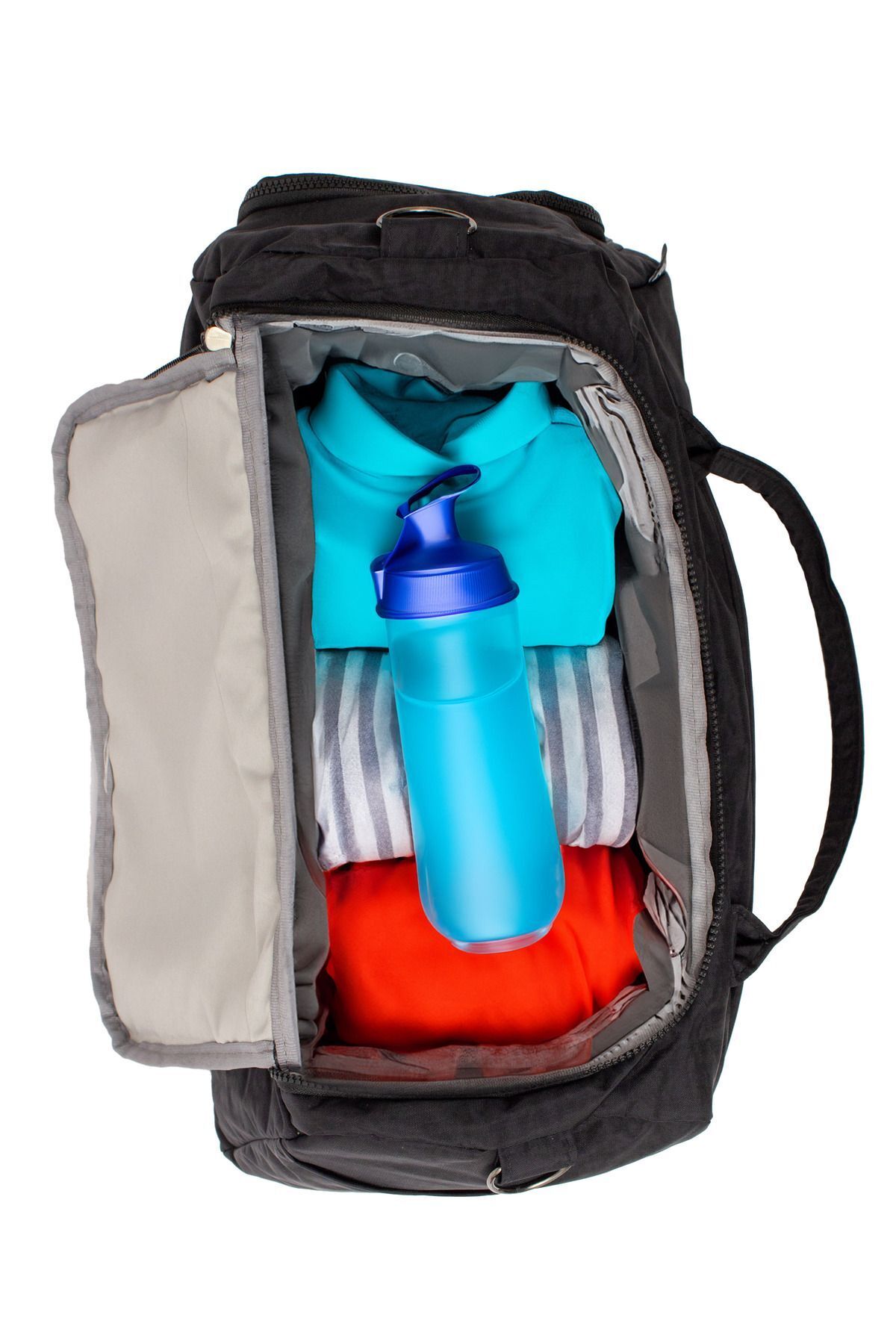 - Omuz askılı tasarımı sayesinde rahat taşıma imkanı sunarken, silindir modeli geniş iç hacmiyle eşyalarınız için bolca yer bırakır