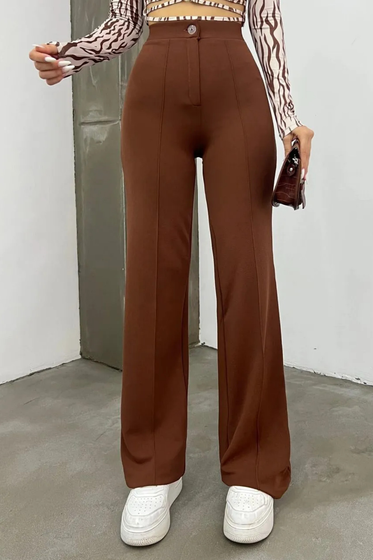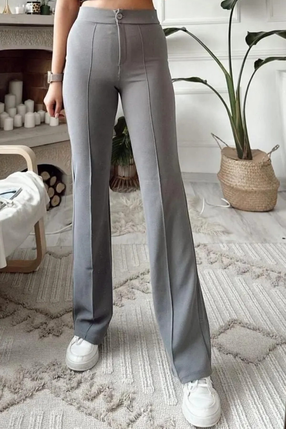 Polyester karışımlı kumaşı sayesinde uzun süreli kullanımda bile formunu koruyan ve rahat bir deneyim sunan kadın pantolon