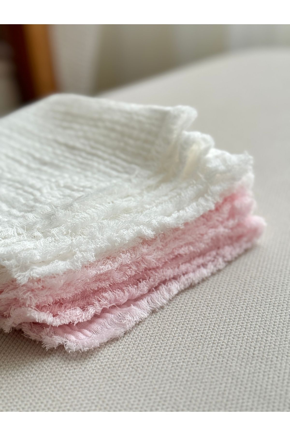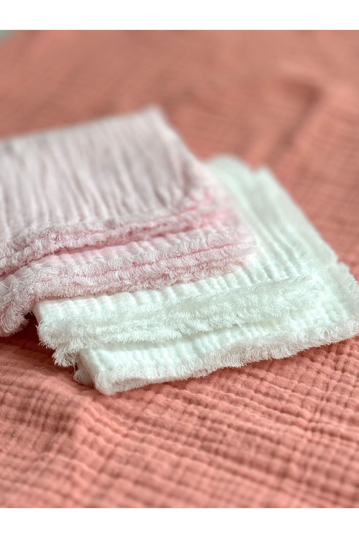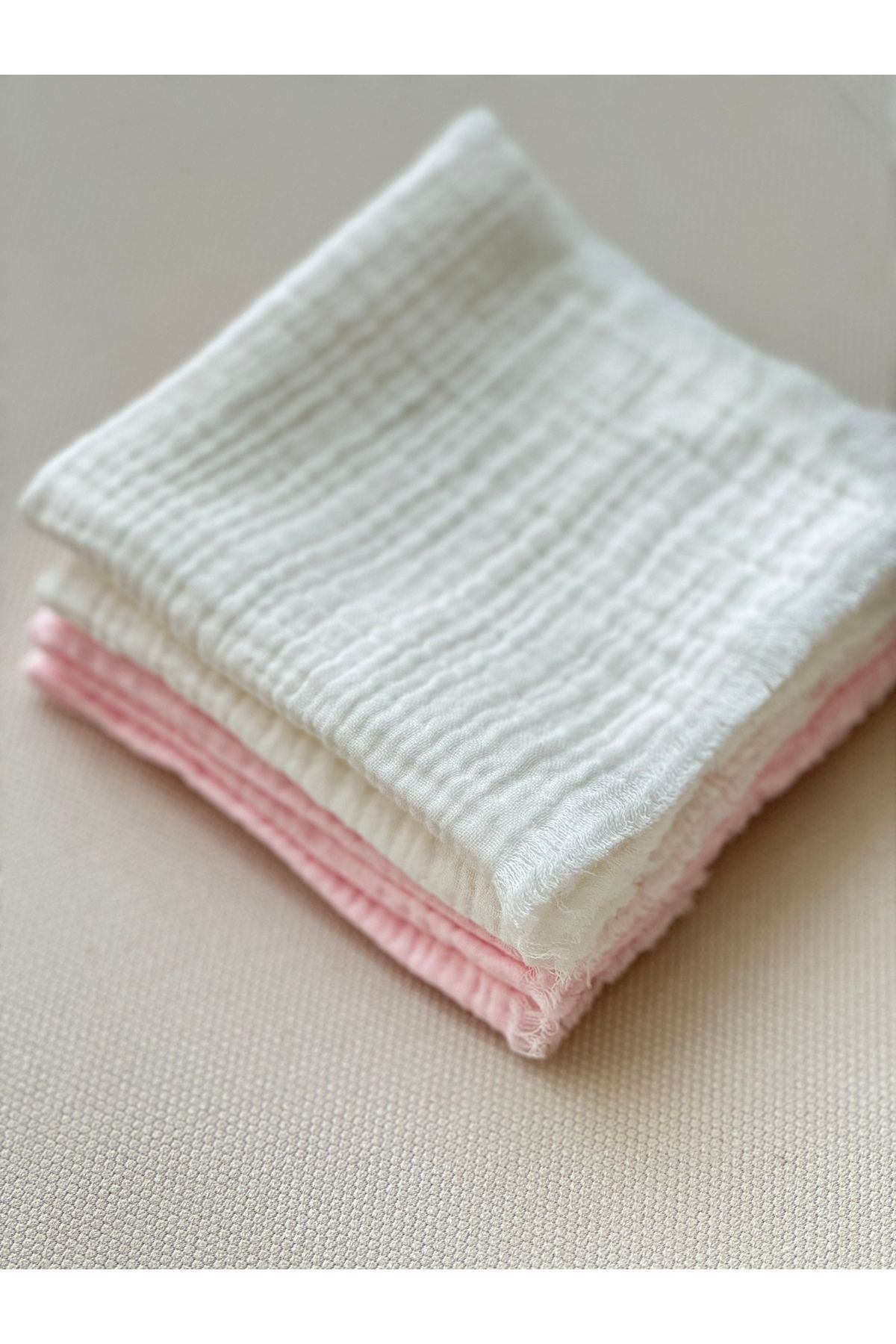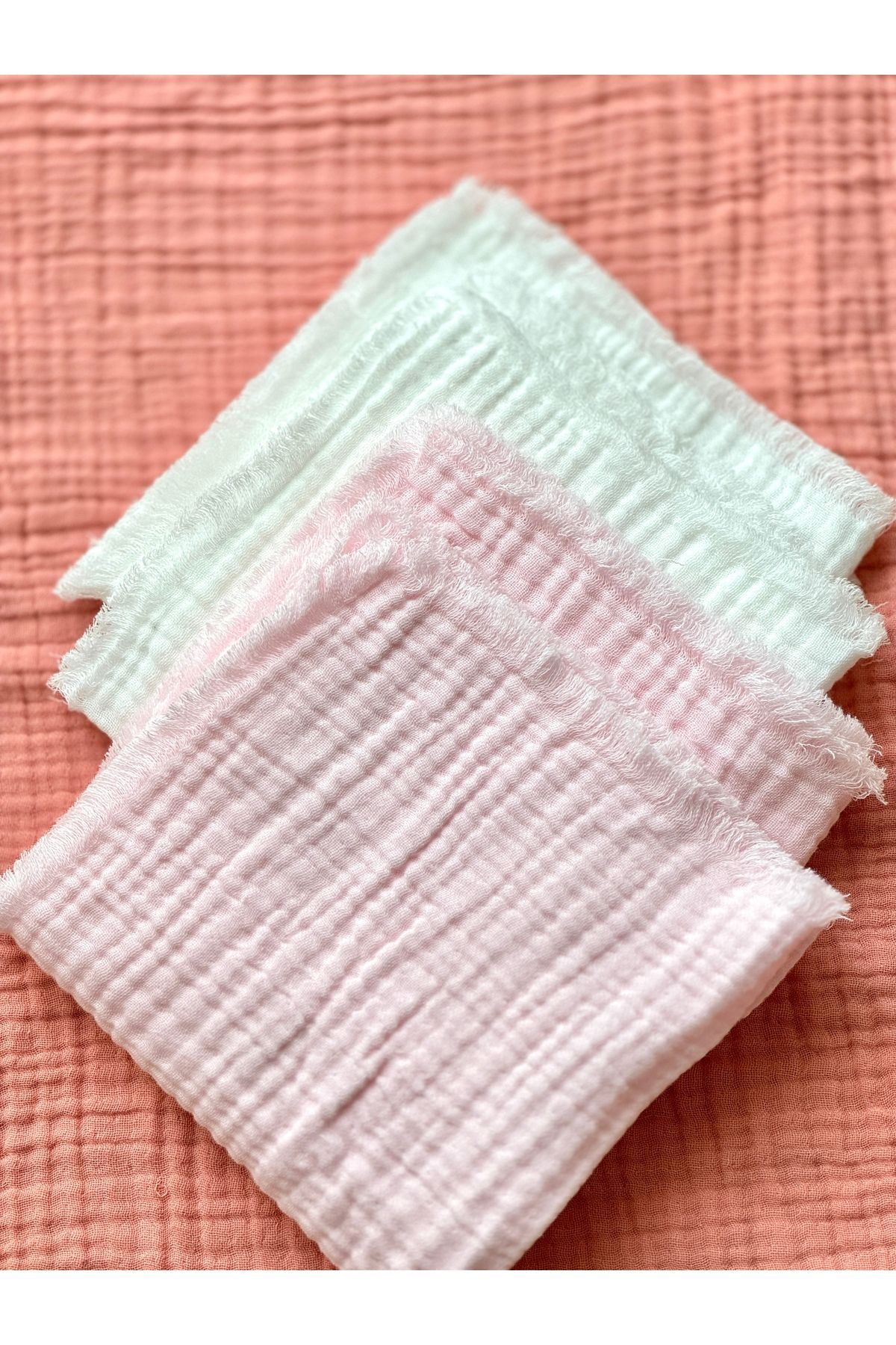 %100 Pamuk Bebek Ağız Silme Mendili 4'lü Set Pembe-Beyaz Omuz Örtüsü Ter Mendili