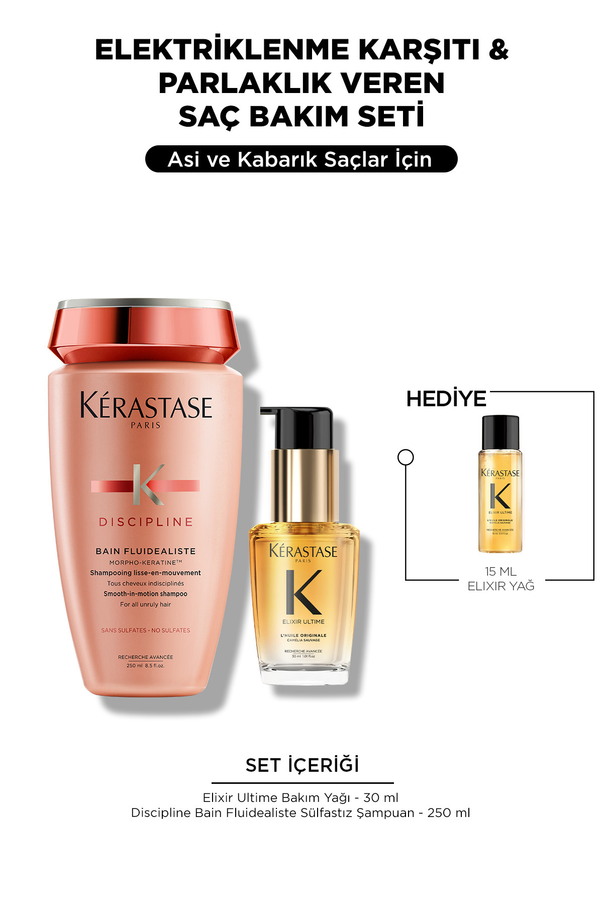 • Kerastase Discipline Bain Fluidéaliste Sülfatsız Elektriklenme Karşıtı Şampuan 250mlKerastase Elixir Ultime Saç Bakım Yağı 30 ml Bundle Adeti:2 Cilt Tipi:Asi & Kabarık Saçlar İçin Kullanma Amacı:Besleyici / Onarıcı Cinsiyet:UNISEX Yaş Grubu:UNISEX