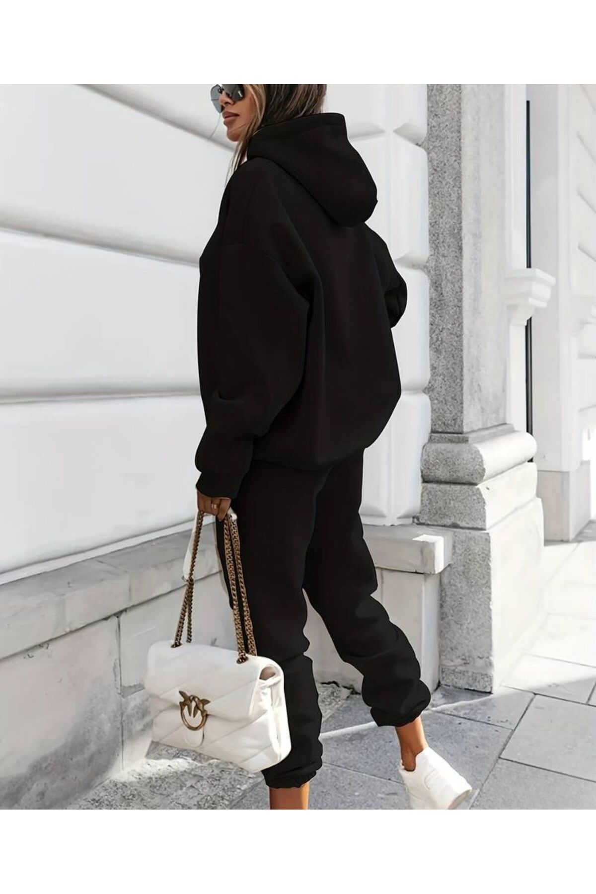 siyah kapşonlu&eşofmanaltı duz unisex alt ust takım