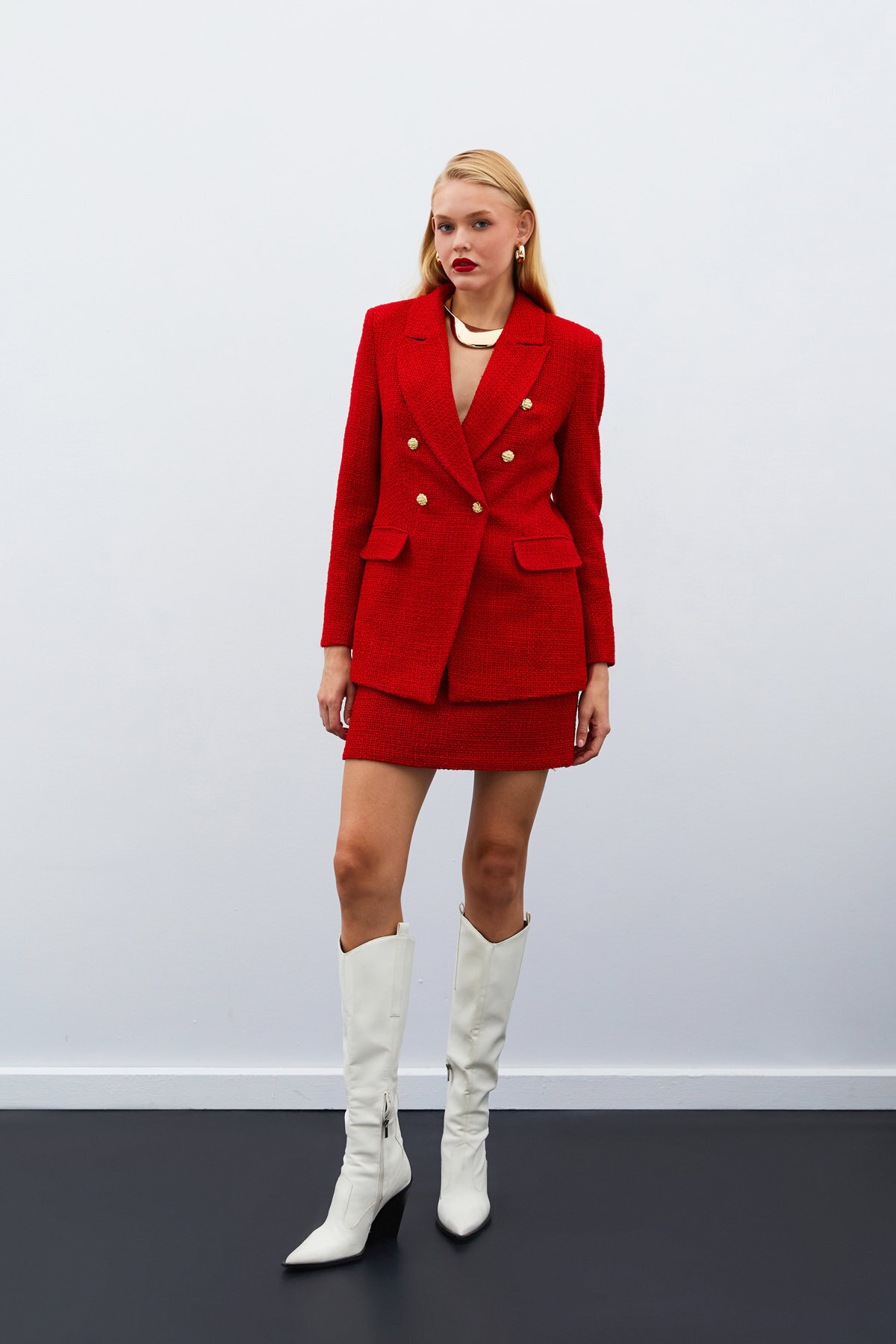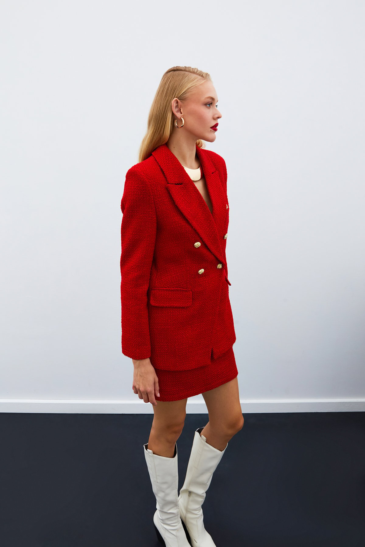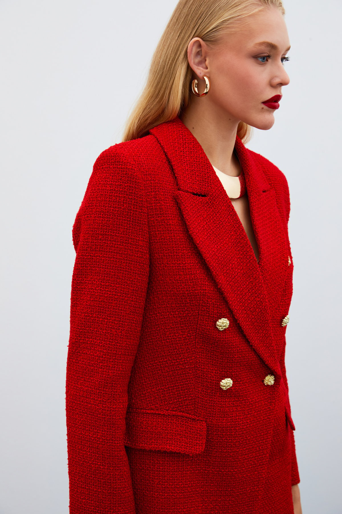 Düğme Detaylı Tüvit Ceket - KIRMIZI