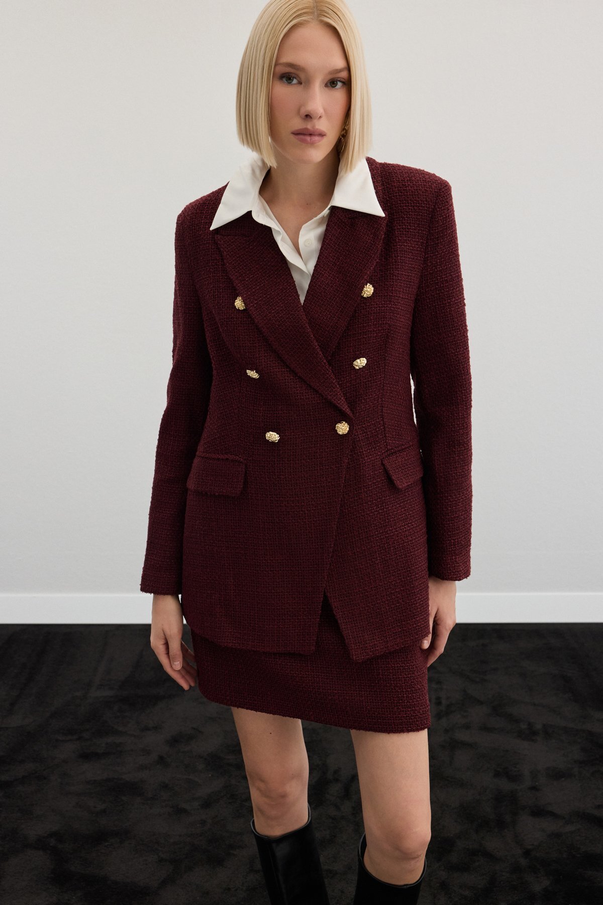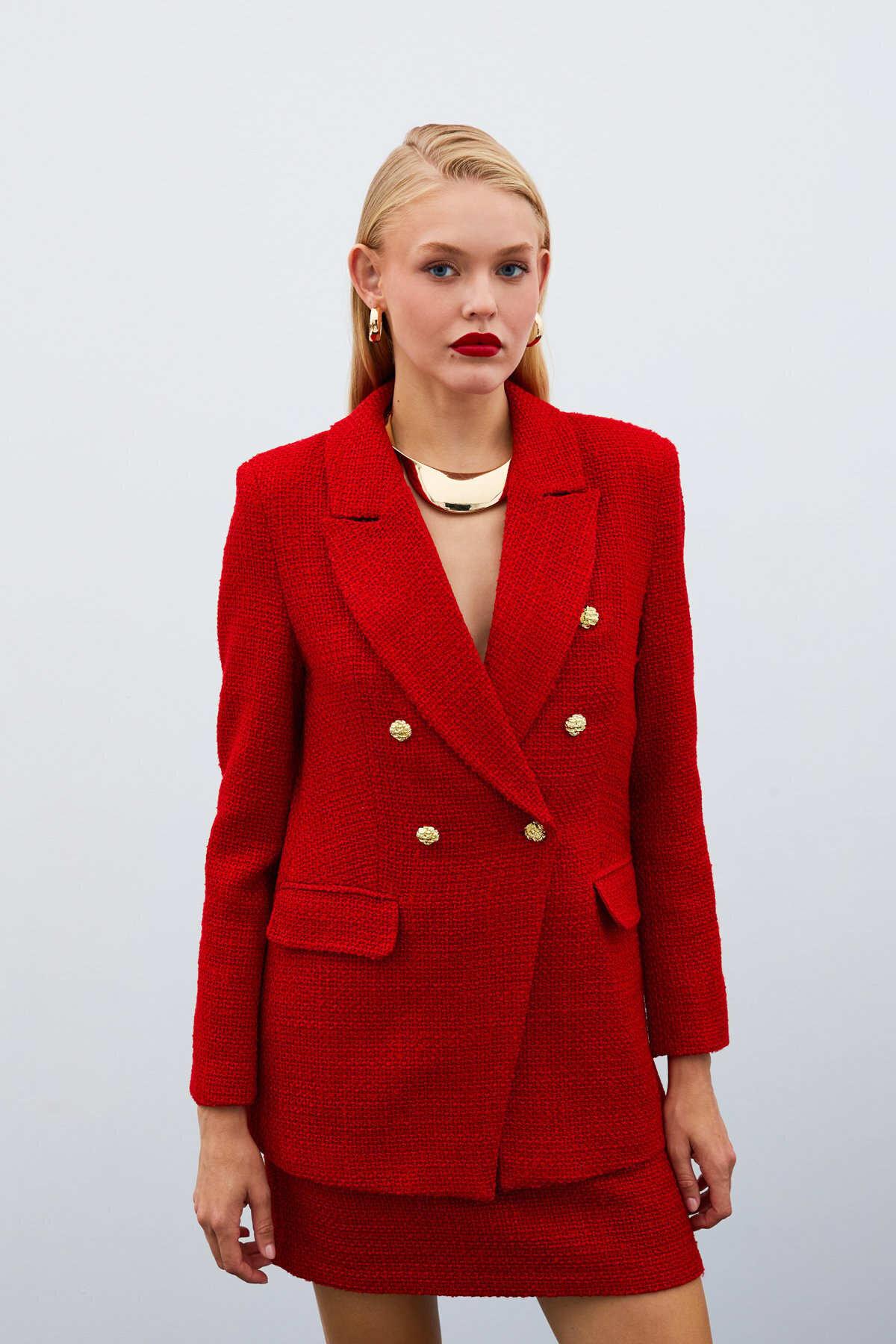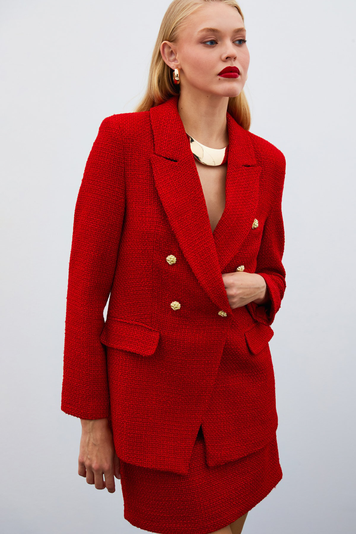 Düğme Detaylı Tüvit Ceket - KIRMIZI