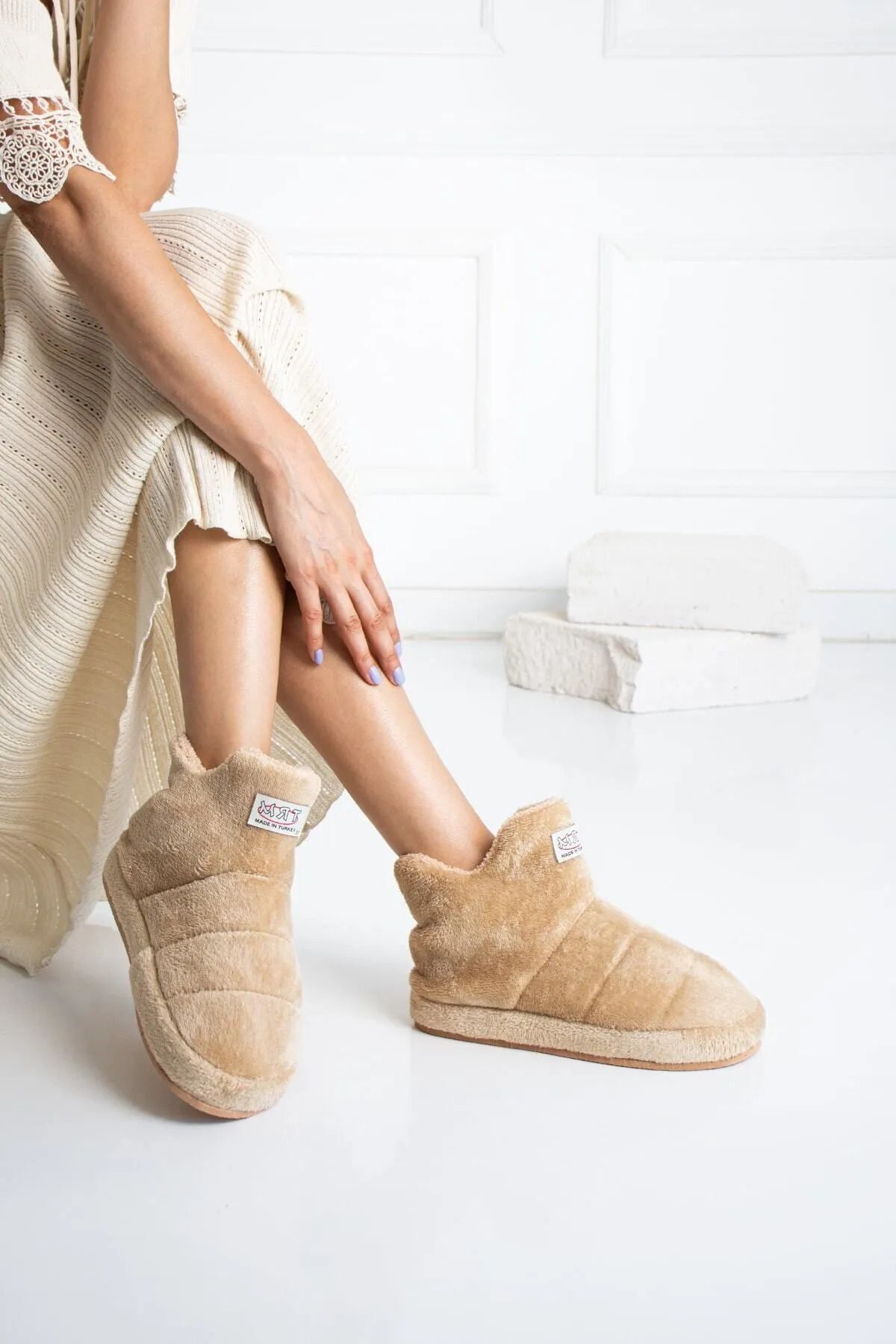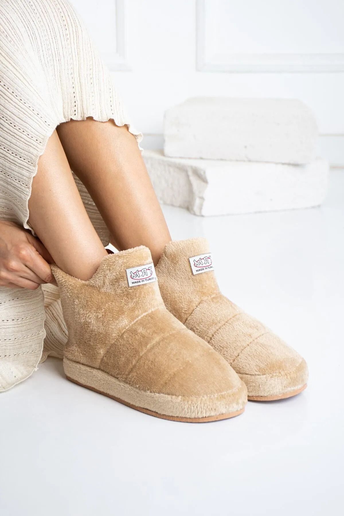 - Yumuşak yün dolgulu iç yapısı ile ayaklarınızı sıcak tutar ve konforlu bir kullanım sunar.