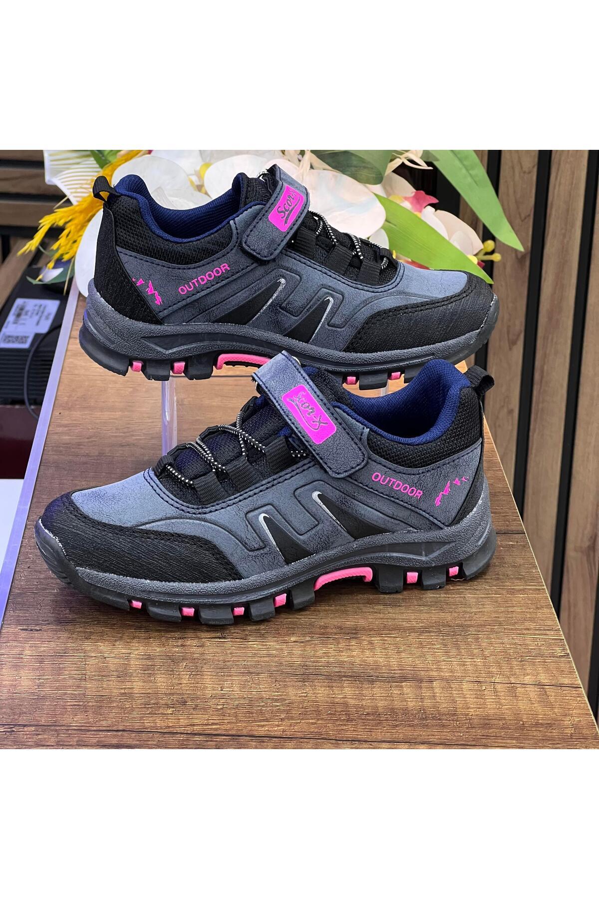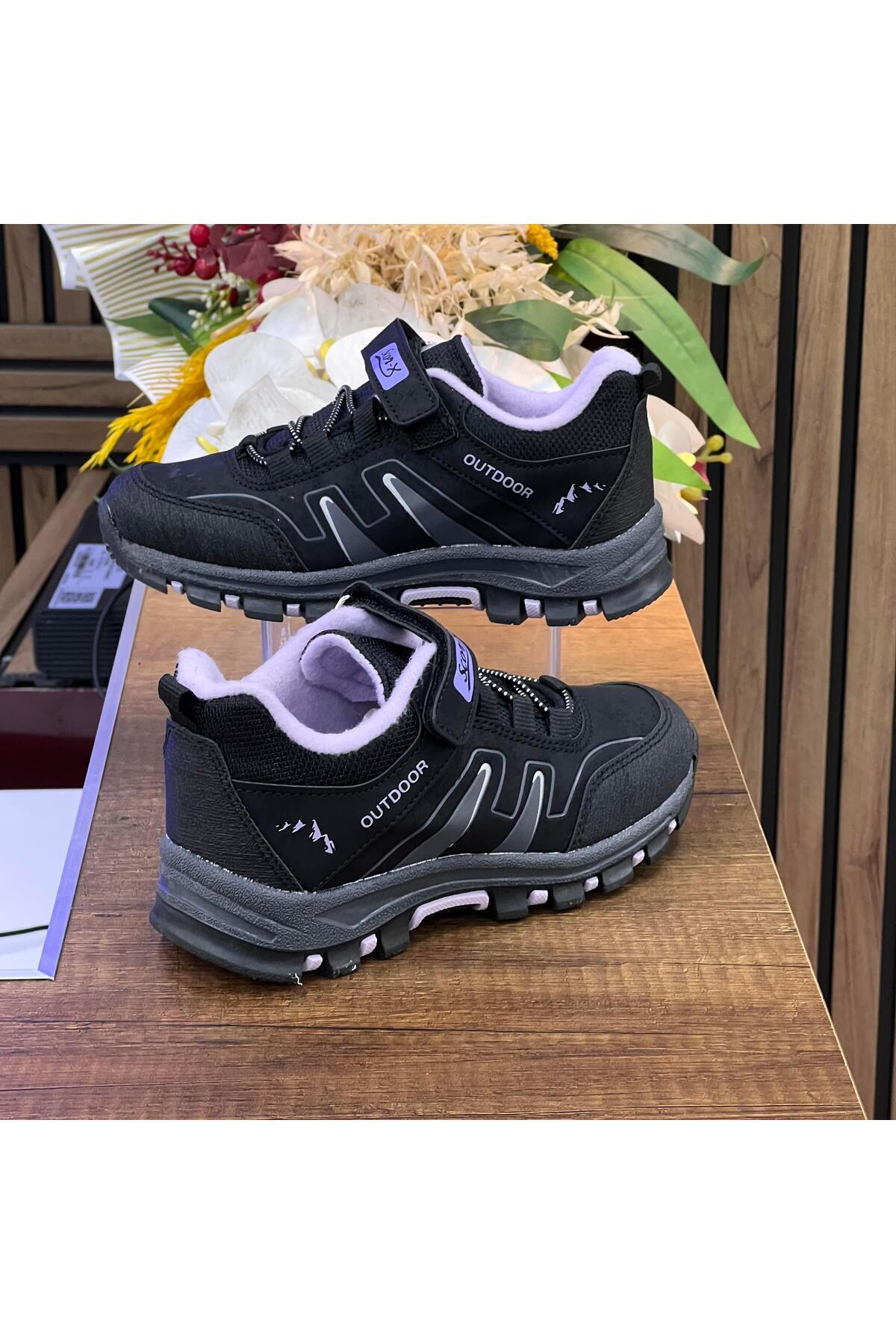 Bantlı Unisex Kısa Çocuk Spor Outdoor Ayakkabı-Siyah-Lila