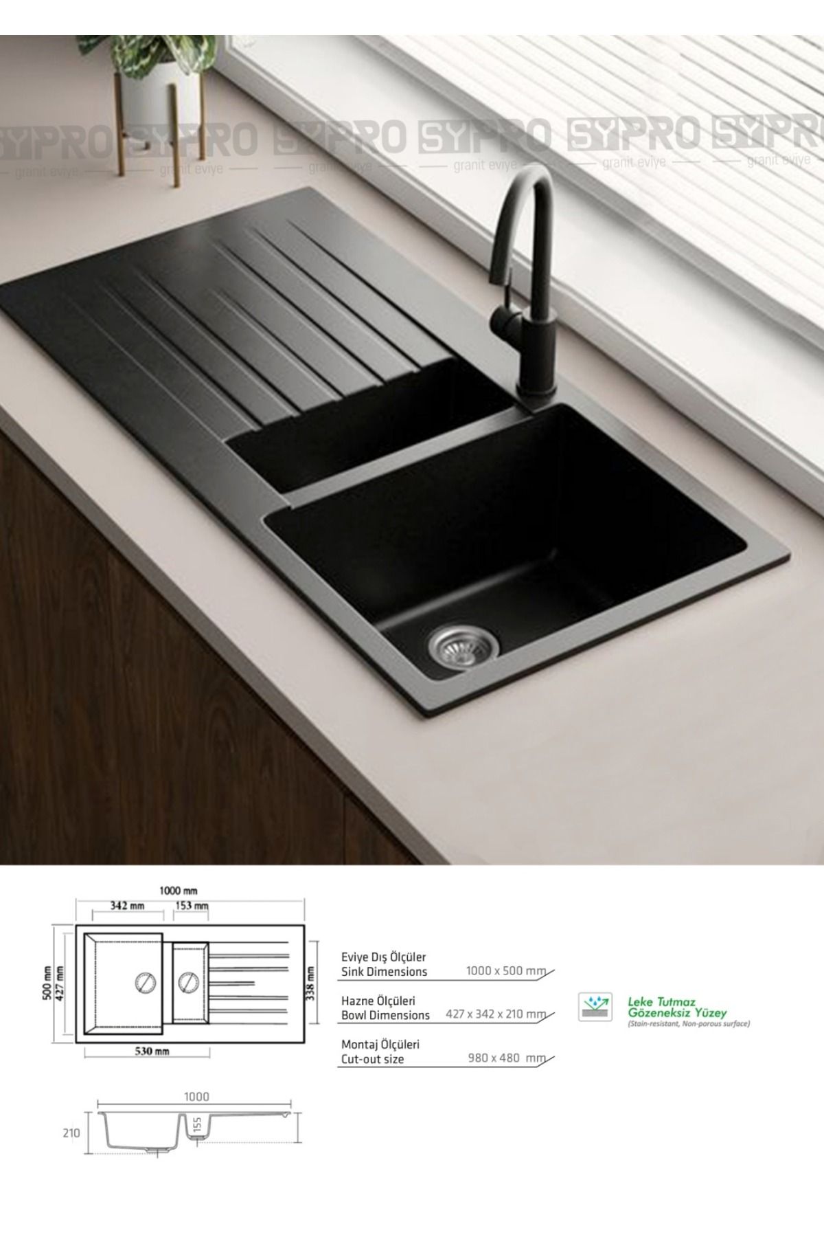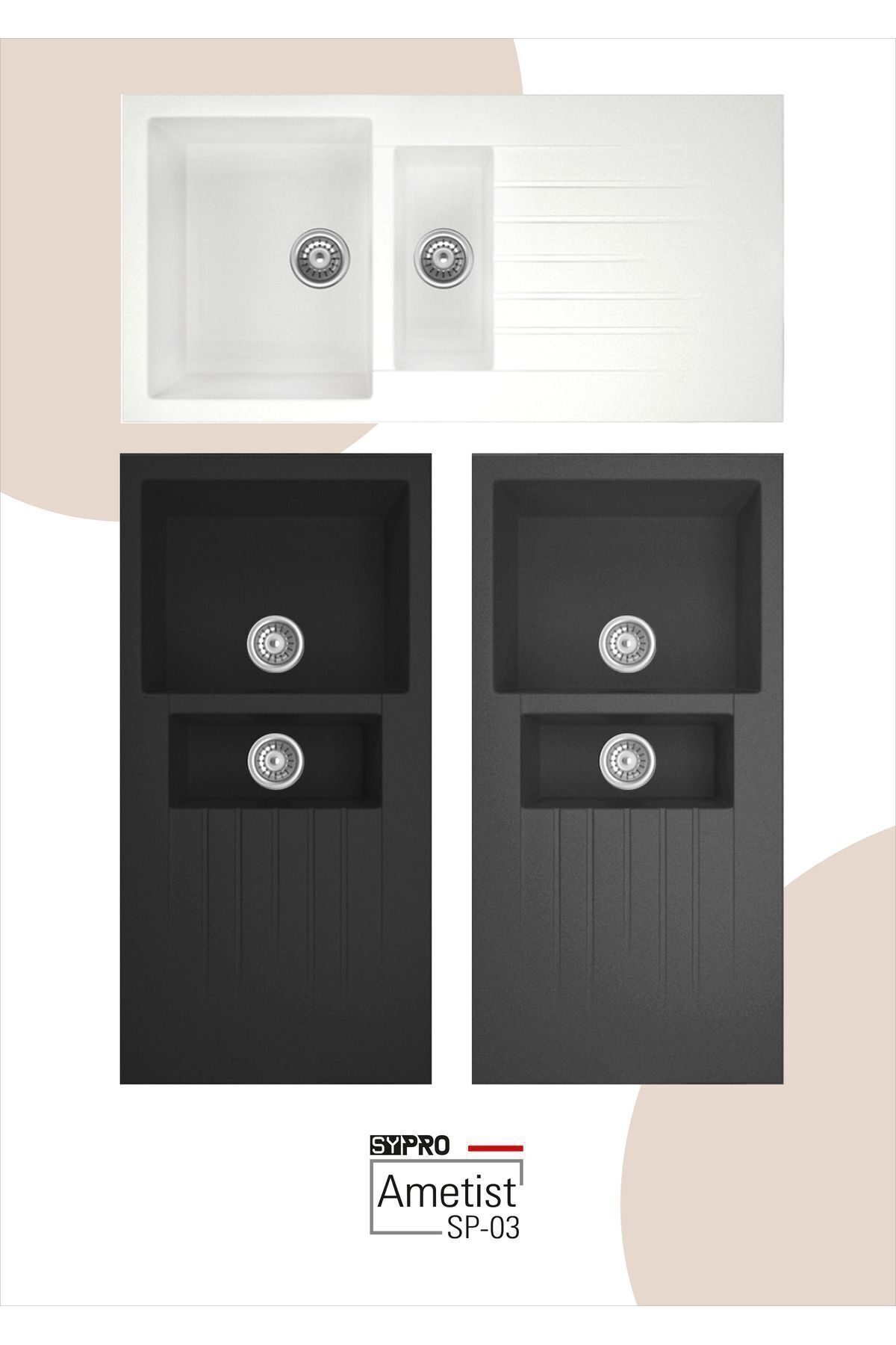 • Ürün dış ölçüler : 995×495 mm • Derinlik : 220 mm • Montaj Yöntemleri : Tezgah Üstü • Renk Seçenekleri : Siyah | Antrasit | Beyaz • Sifon takımı, modele uygun olarak kutu içeriğinde bulunmaktadır.