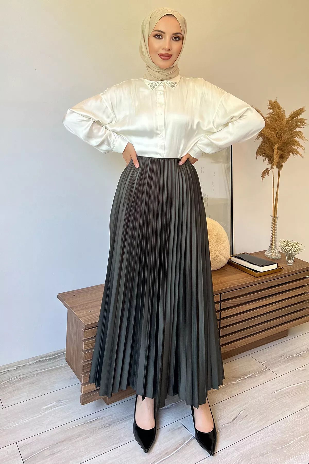 - Zarif tasarımıyla dikkat çeken ince piliseler, tesettür eteğinize modern bir dokunuş katıyor.