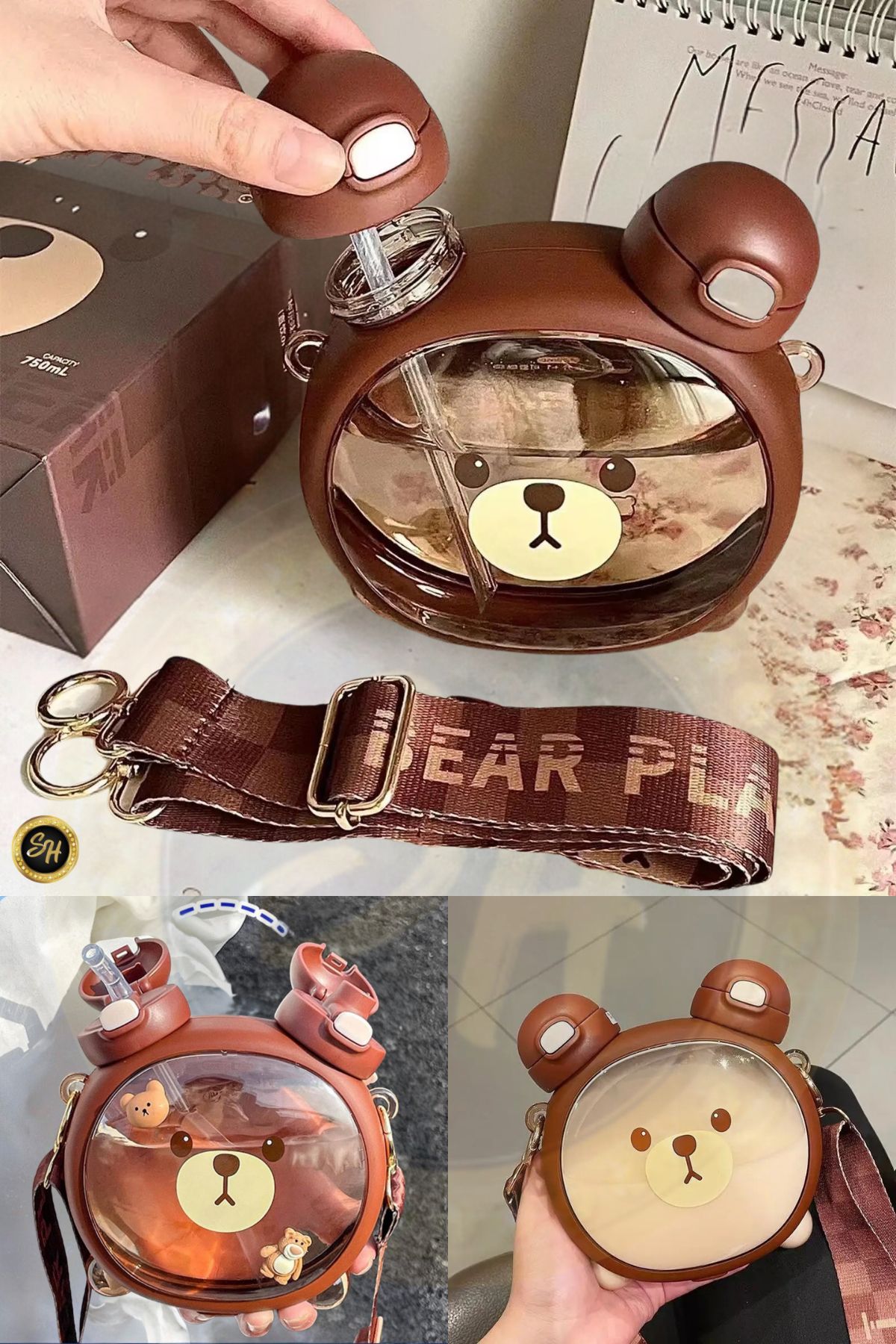 2 Çıkışlı Sevimli Ayıcık Model Su Matarası Su Şişesi Bpa Içermez Suluk Çocuk Okul Su Şişesi