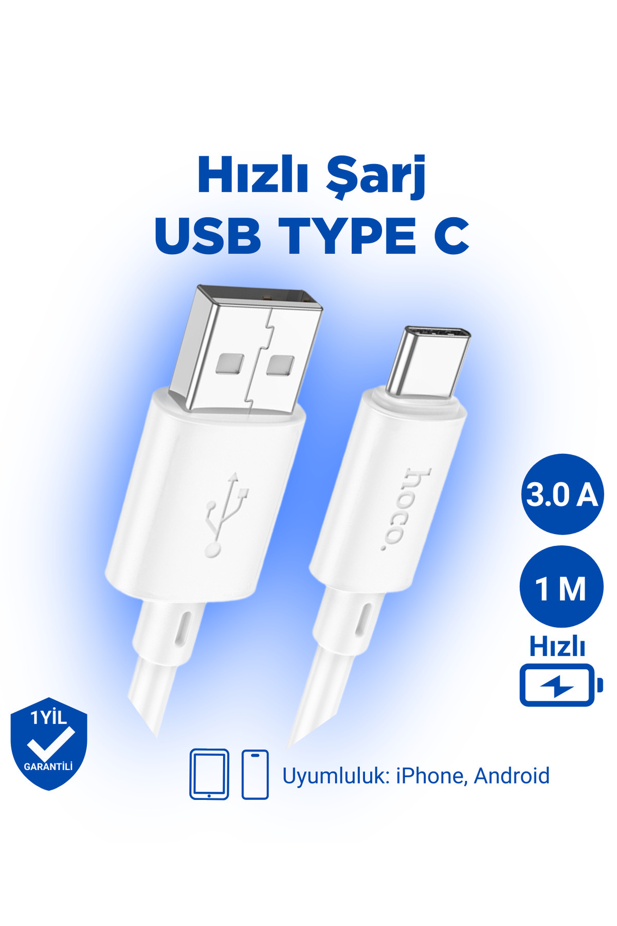 X88 3a Type-c To Usb Iphone Android Uyumlu Hızlı Şarj Veri Kablosu Beyaz 1 Metre
