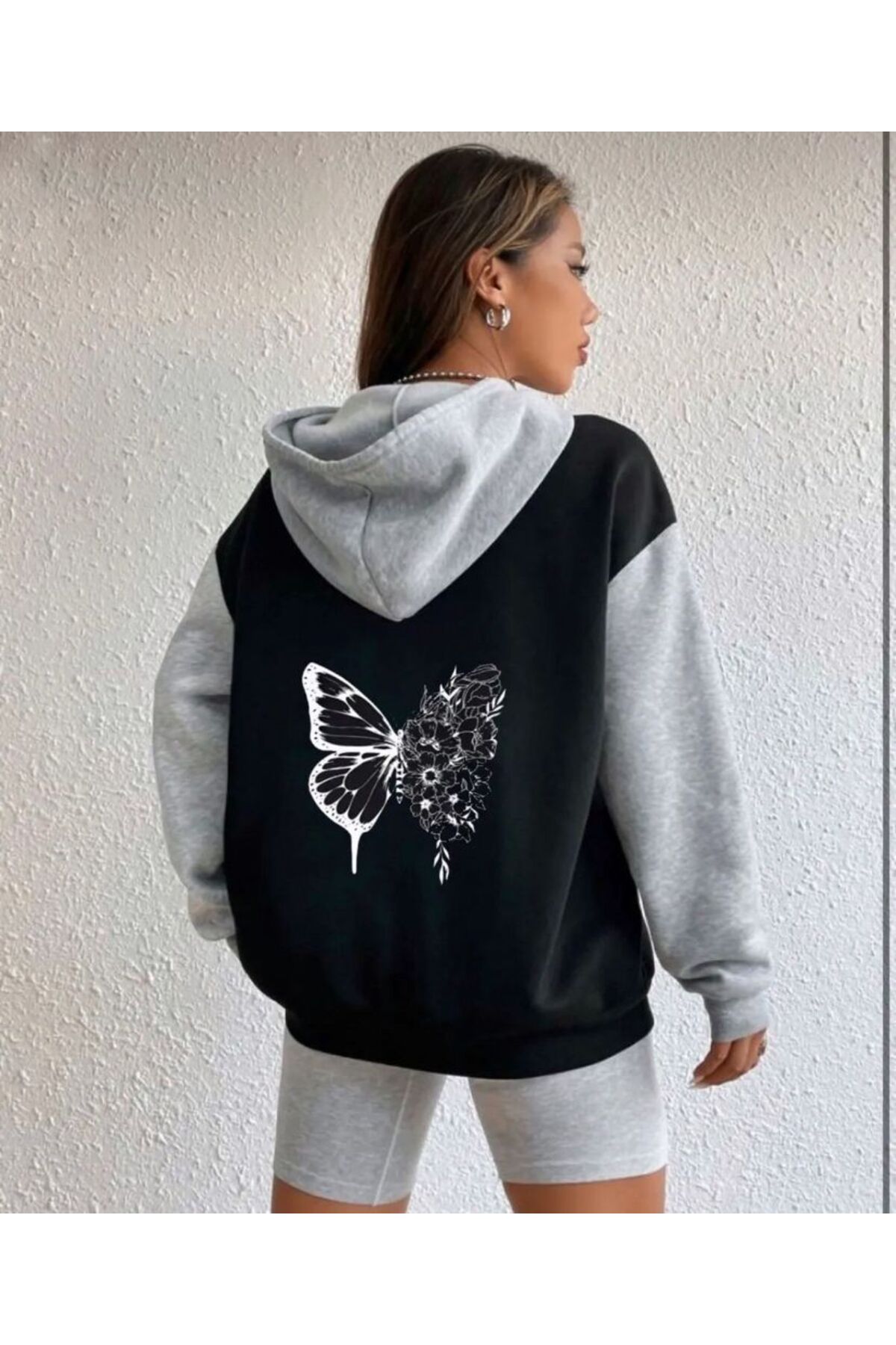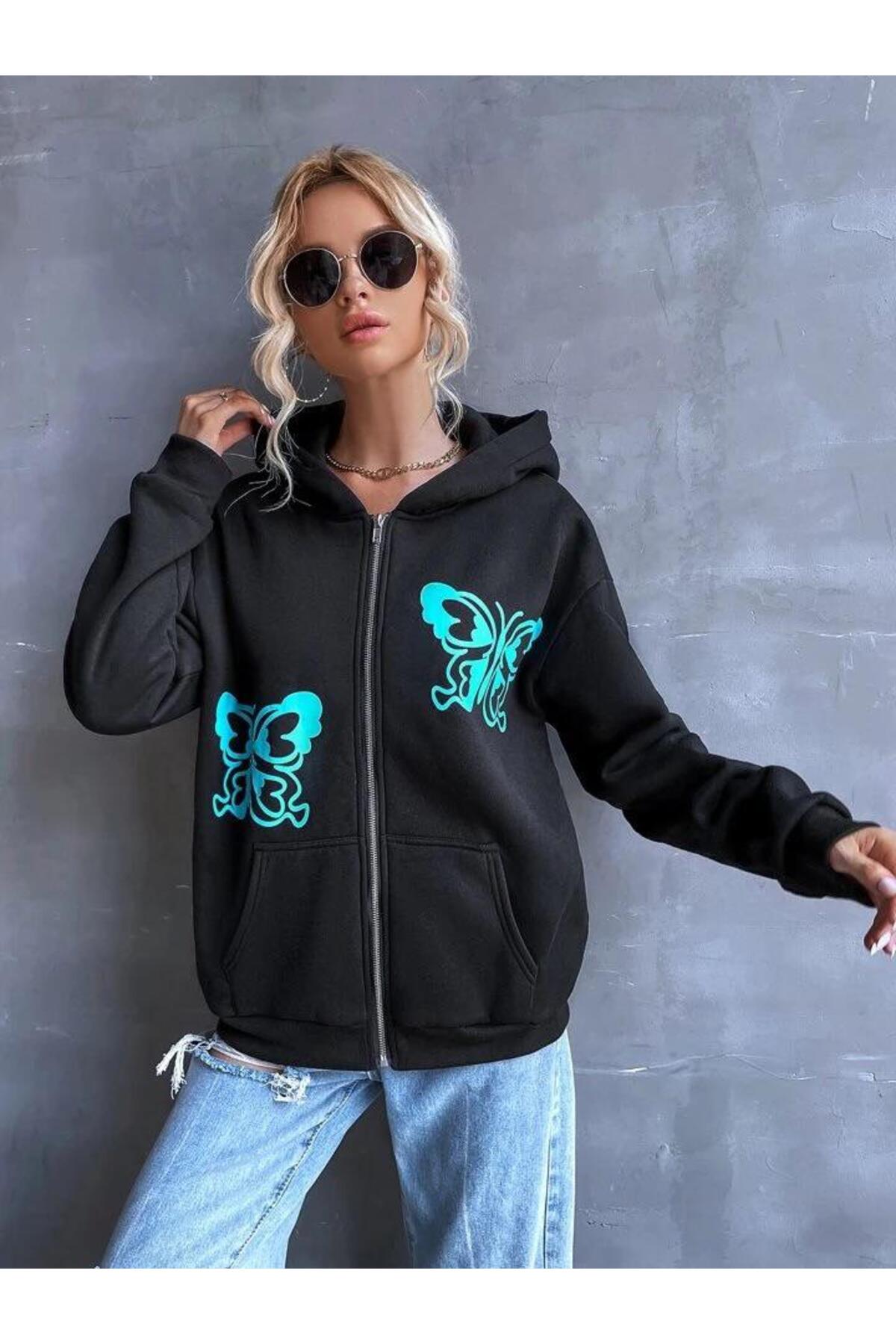 • - Rahatlık ve şıklığı bir arada sunan siyah kapüşonlu fermuarlı crop hırka, günlük kullanım için idealdir.