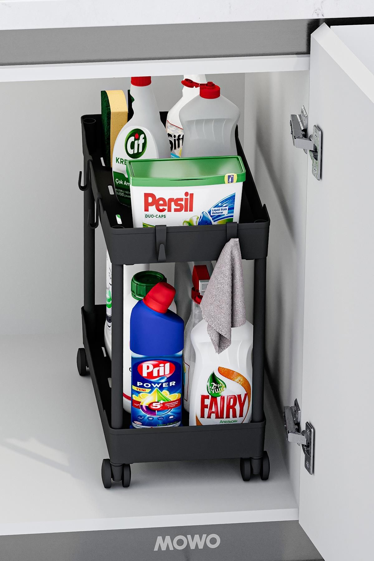 Özellikler: • Çok Amaçlı Kullanım: Mutfak ve banyo temizlik detarjanları, bulaşık detarjanı, havlu, temizlik malzemeleri, şampuan gibi birçok ürünü rahatlıkla depolayabilirsiniz.