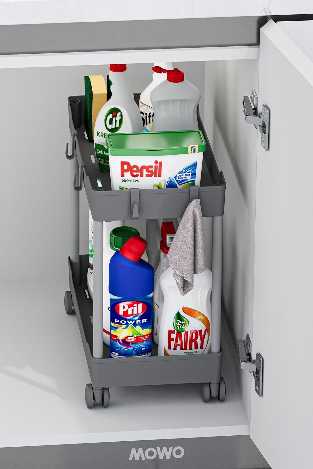Özellikler: • Çok Amaçlı Kullanım: Mutfak ve banyo temizlik detarjanları, bulaşık detarjanı, havlu, temizlik malzemeleri, şampuan gibi birçok ürünü rahatlıkla depolayabilirsiniz.