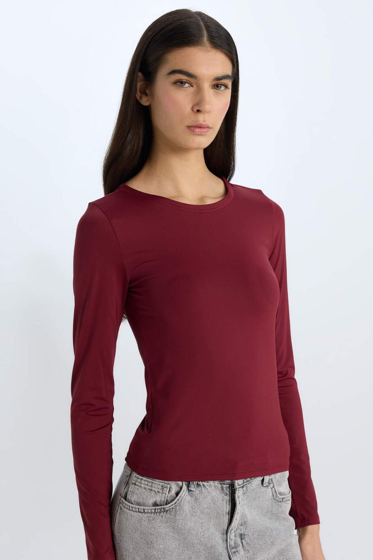 Şık ve rahat slim fit bisiklet yaka uzun kollu tişört.