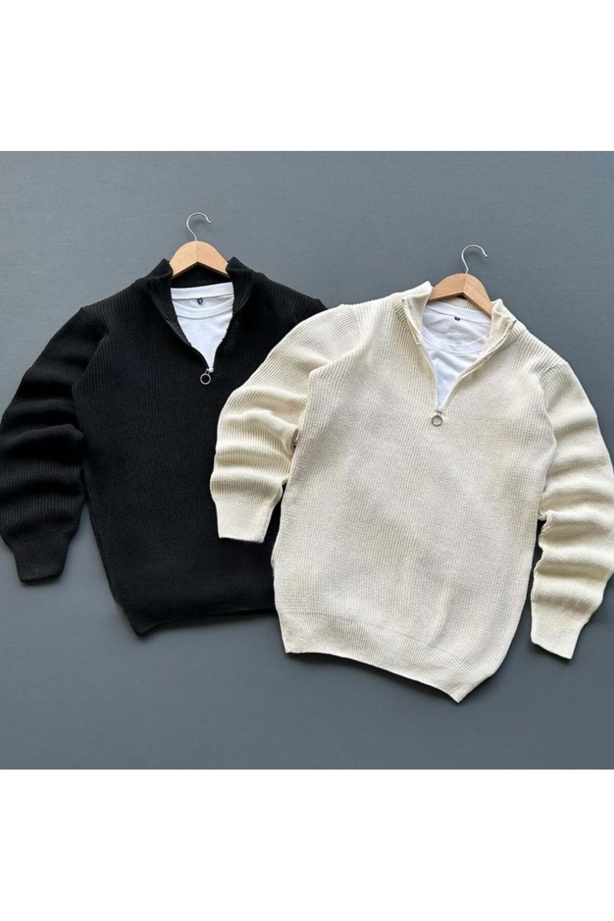 - Fermuarlı yaka detayı modern ve fonksiyonel bir dokunuş katarken, düz deseniyle sadeliği ön plana çıkarır.