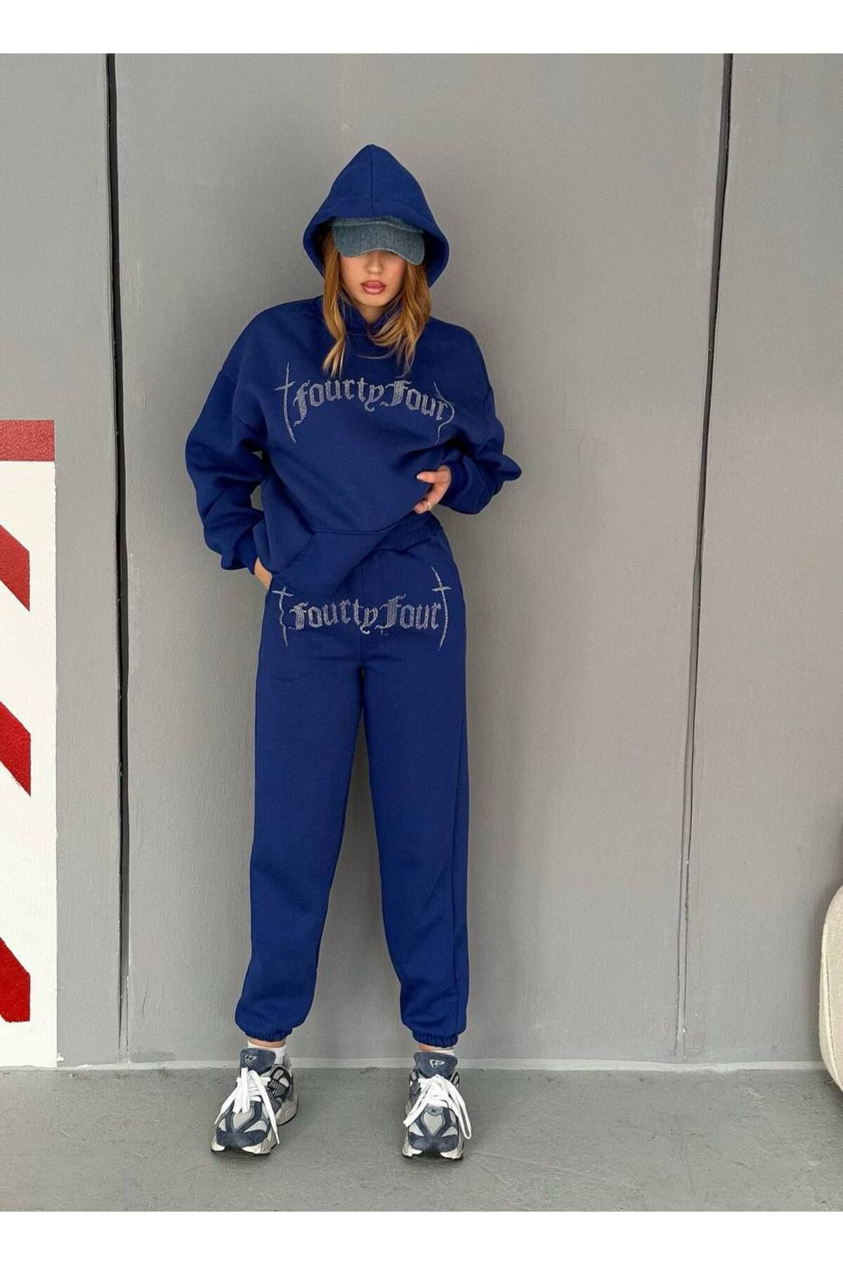 - Mavi renkteki bu eşofman takımı, hem gündüz hem de gece kullanımına uygun olarak tasarlanmıştır.