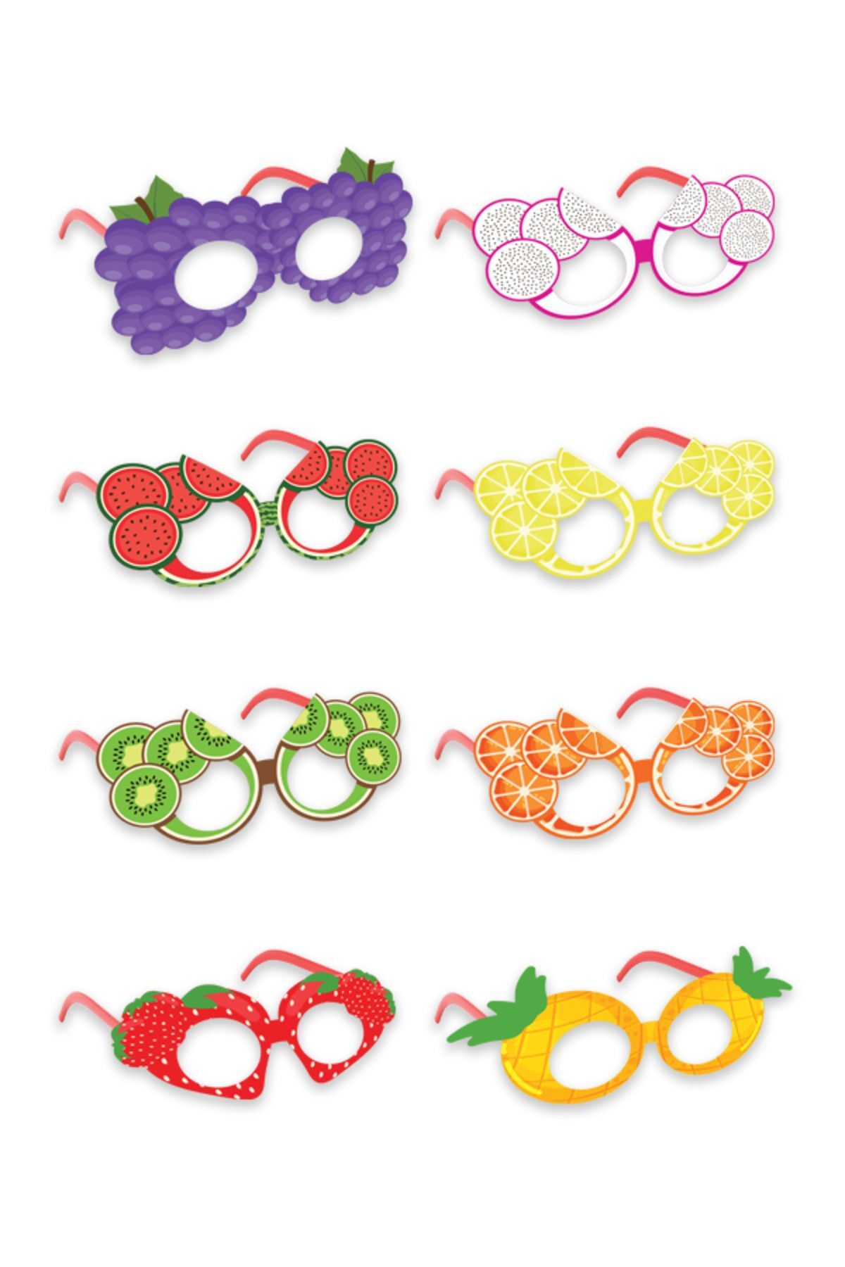 8 adet gözlük seti: Her misafiriniz için bir tane olmak üzere toplamda 8 adet meyve temalı doğum günü gözlüğü bulunur, böylece herkes keyifle kullanabilir