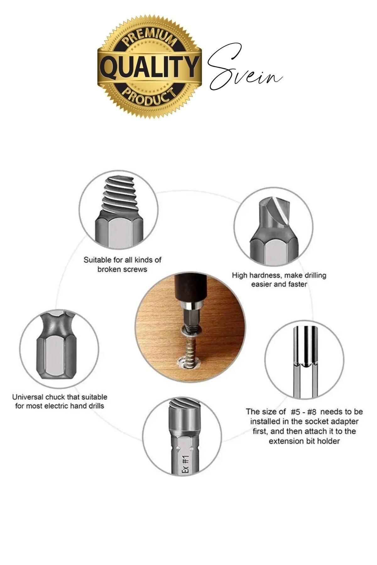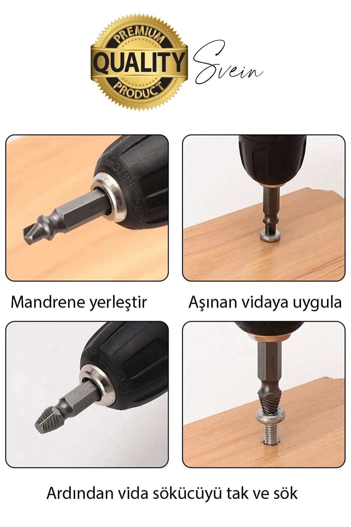 Hasarlı Vida Çıkarıcı birbirinden farklı 4 uç seçeneği ile her türlü paslanmış, yalama olmuş, körelmiş, eğilmiş, yamulmuş vidaları kolayca yerinde söker atar.