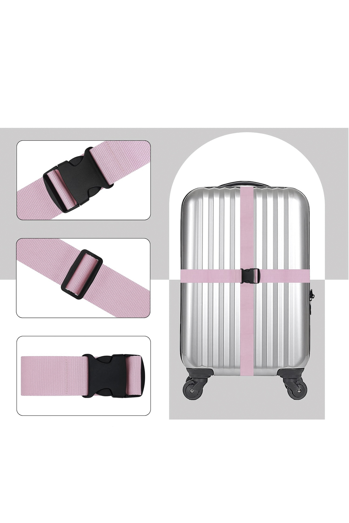 Pudra Pembe renkli, düz desenli ve ayarlanabilir tokalı tasarımı ile her türlü valize kolayca uyum sağlar