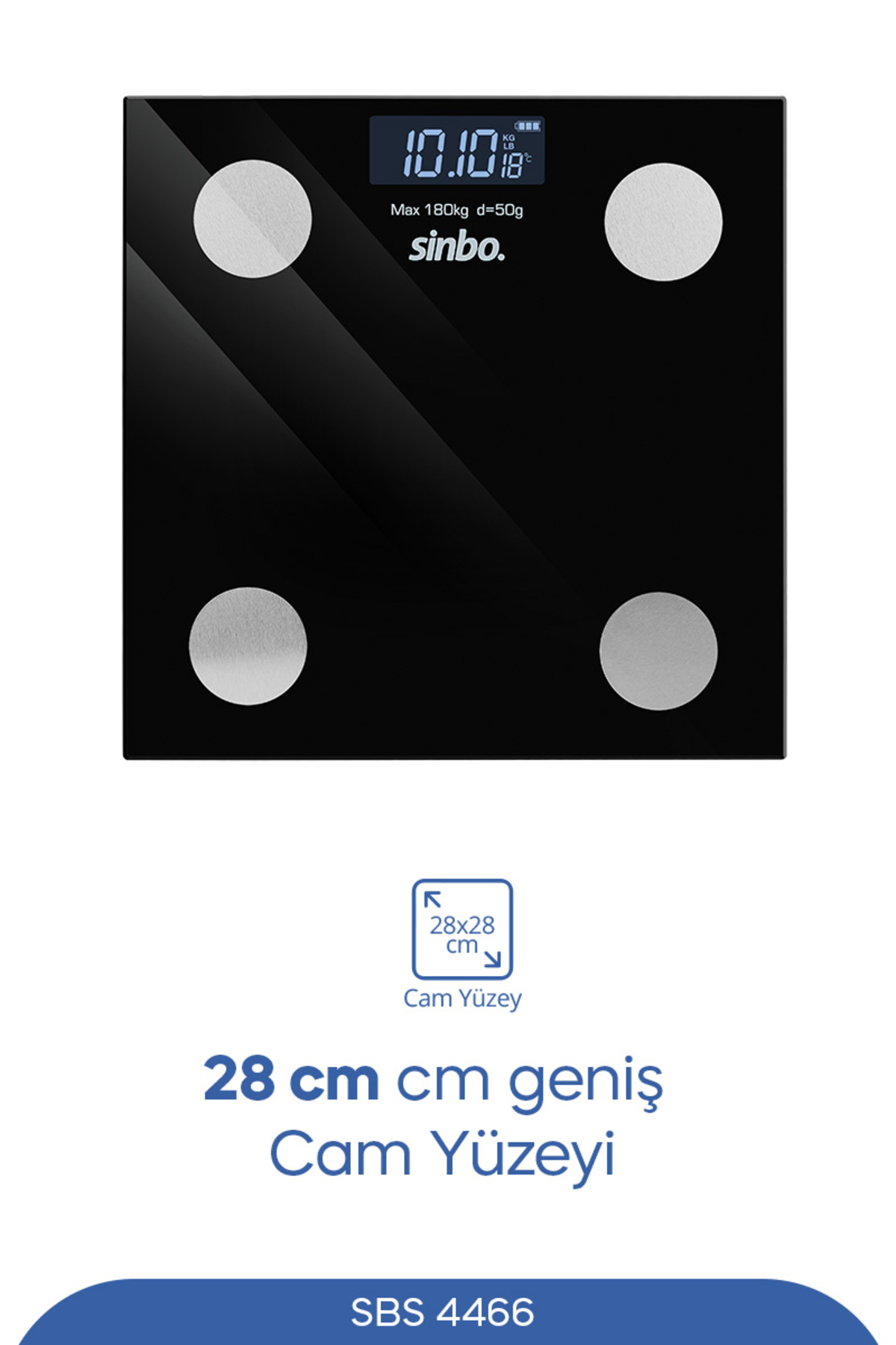 SBS-4466 Bluetooth Dijital Yağ Su Kas Vücut Kitle Endeksi Kilo Ölçer Tartı BaskülSBS-4466 Yağ Ölçer Fonksiyonlu Akıllı Bluetooth Tartı •Kapasite: 180KG/396LB.