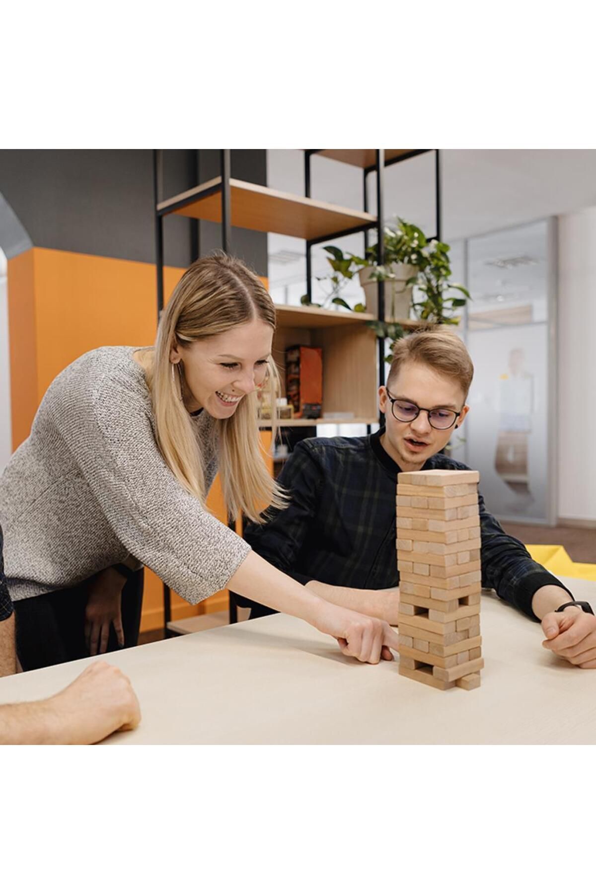 Büyük Boy Doğal Ahşap Denge Oyunu Kule Oyunu 54 Parça Ahşap Yapı Blokları Cenga
