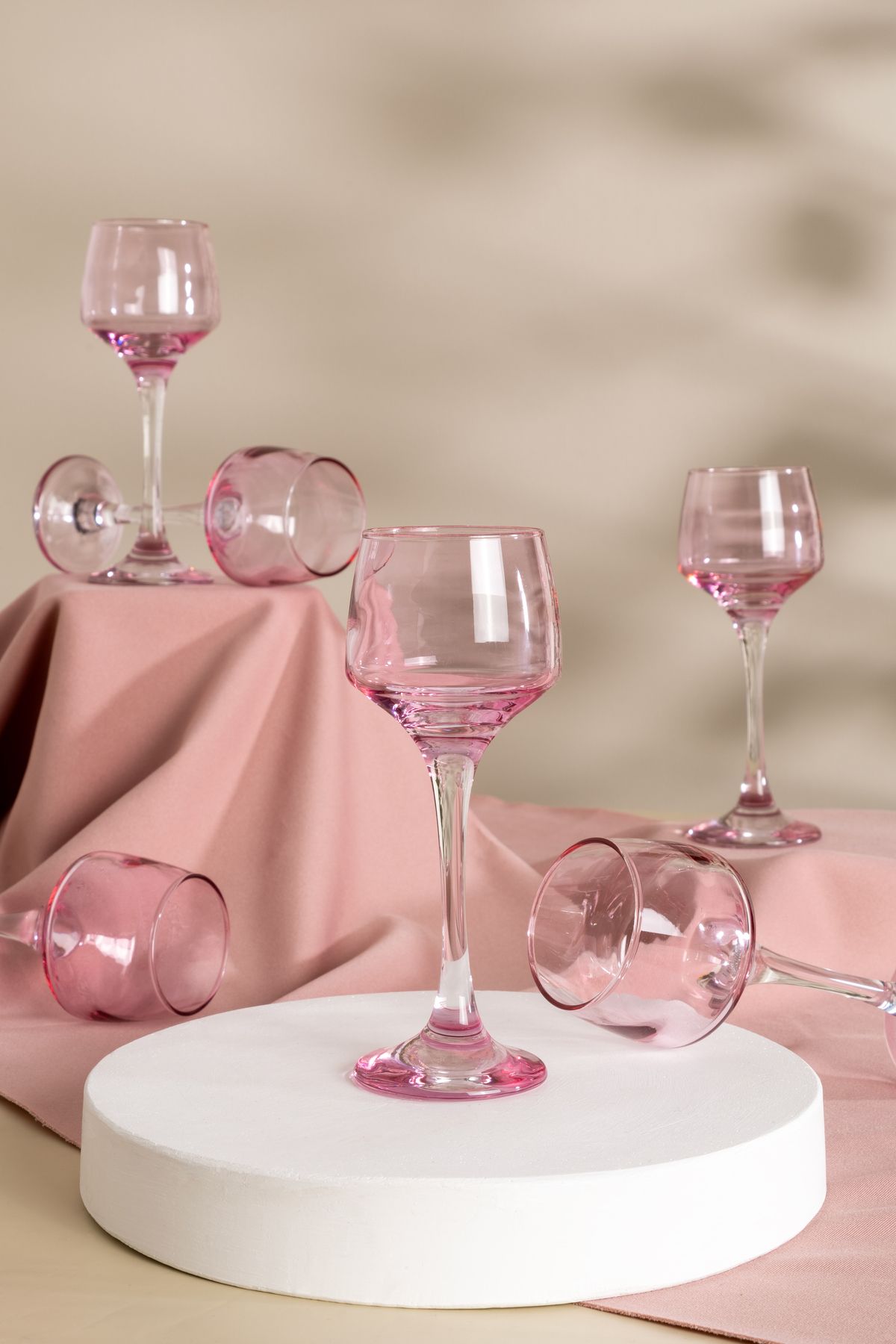 Romantik pembe rengi ve şık ayaklı tasarımıyla öne çıkan bu bardak seti, her sofraya lüks ve zarafet katmak için tasarlandı.