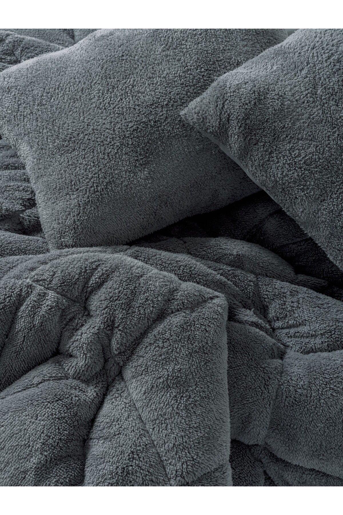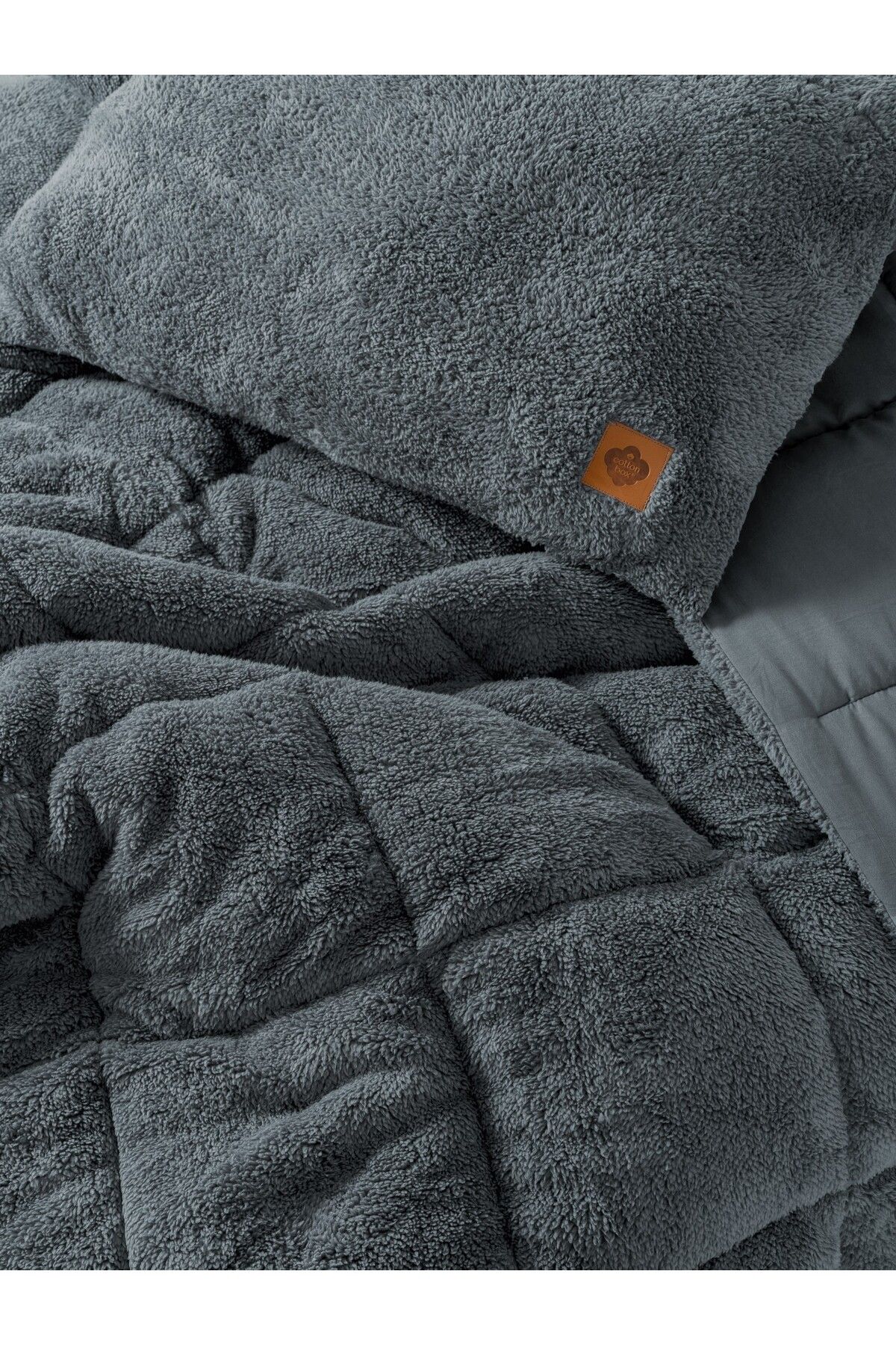 Tek Kişilik Peluş Yorgan Seti Gri 155x215 cm