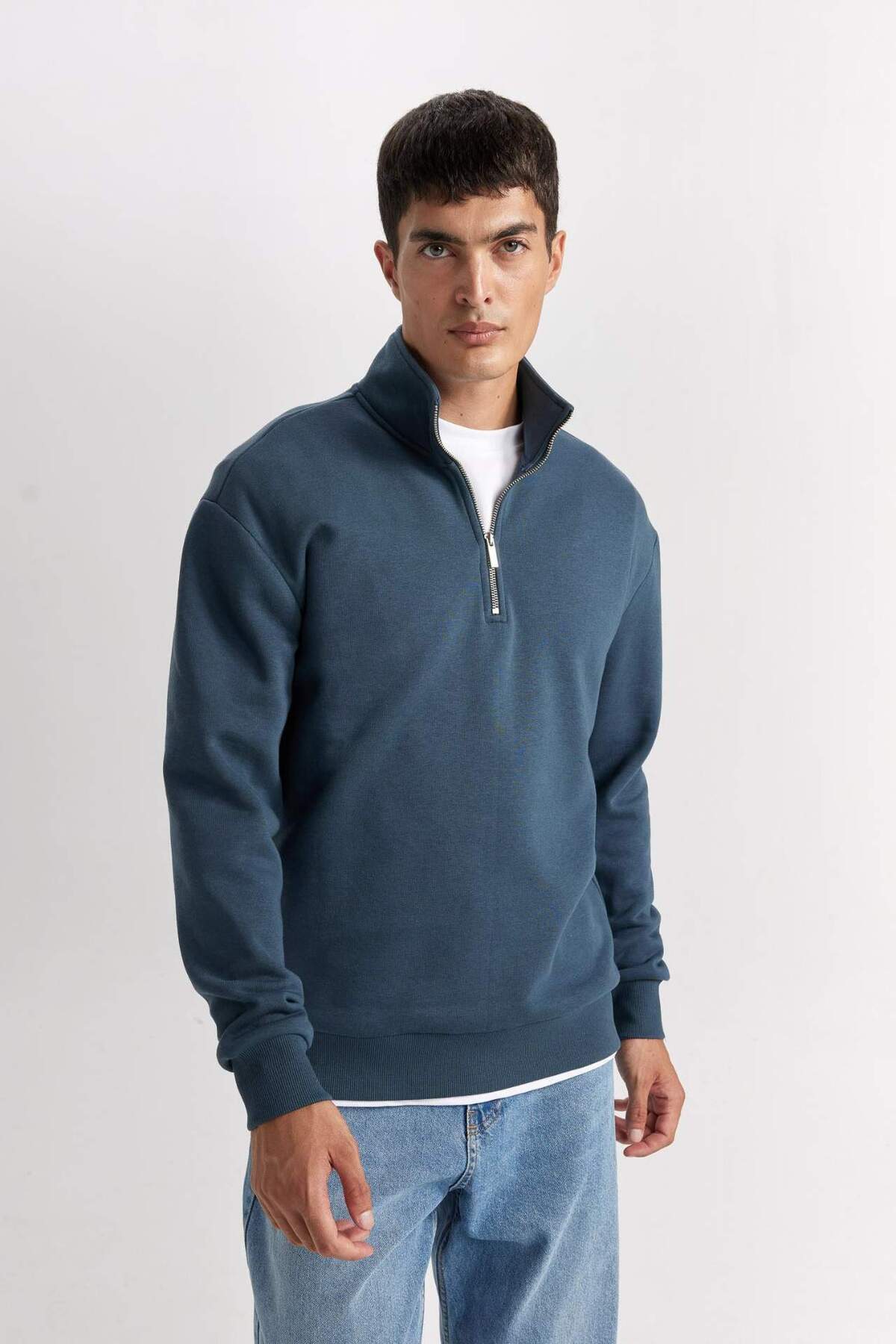 3 İplik Pamuklu Şardonlu İçi Polarlı Comfort Regular Fit Rahat Kalıp Dik Yaka Fermuarlı Kalın Sweatshirt: Şıklığı ve konforu bir arada sunan bu kalın sweatshirt, soğuk havalarda sizi sıcacık tutacak.