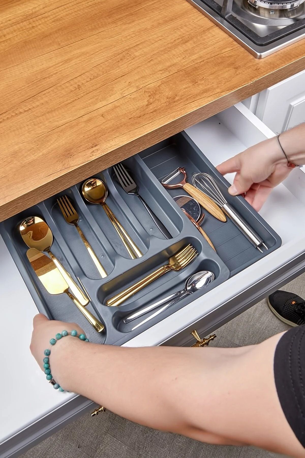 Kayar Kaşıklık Genişletilebilir Ölçüsü Ayarlanabilir Gizli Bölme Kayar Kızaklı Çekmece Içi Kaşıklık
