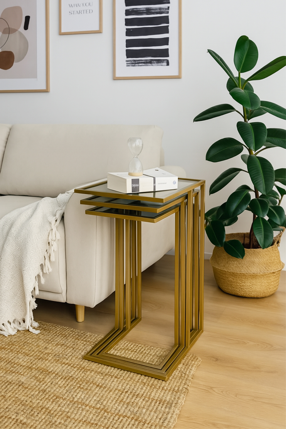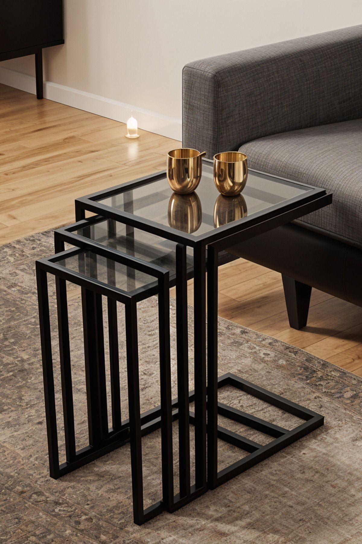 - Dikdörtgen şekliyle modern çizgiler taşıyan bu sehpa takımı, her türlü dekorasyonla kolayca uyum sağlar.