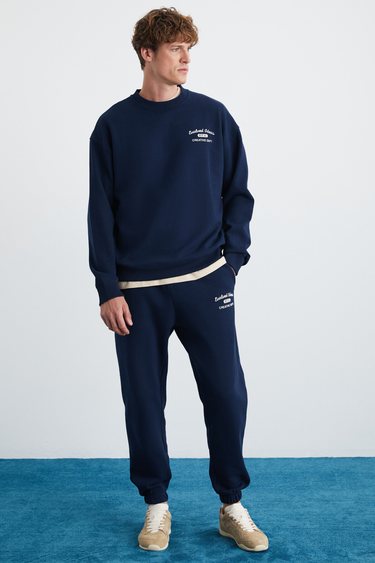 Nottingham Erkek 2'li Set Relaxed Organik Pamuk İçi Şardonlu Lacivert Eşofman Takımı