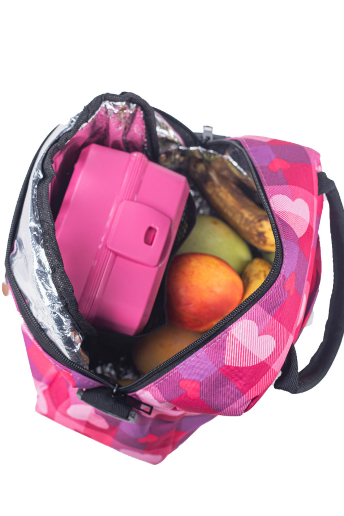 Isı Yalıtımlı Su Geçirmez Termal Çanta Yemek Taşıma Beslenme Çantası Askılı Pembe Kalpli