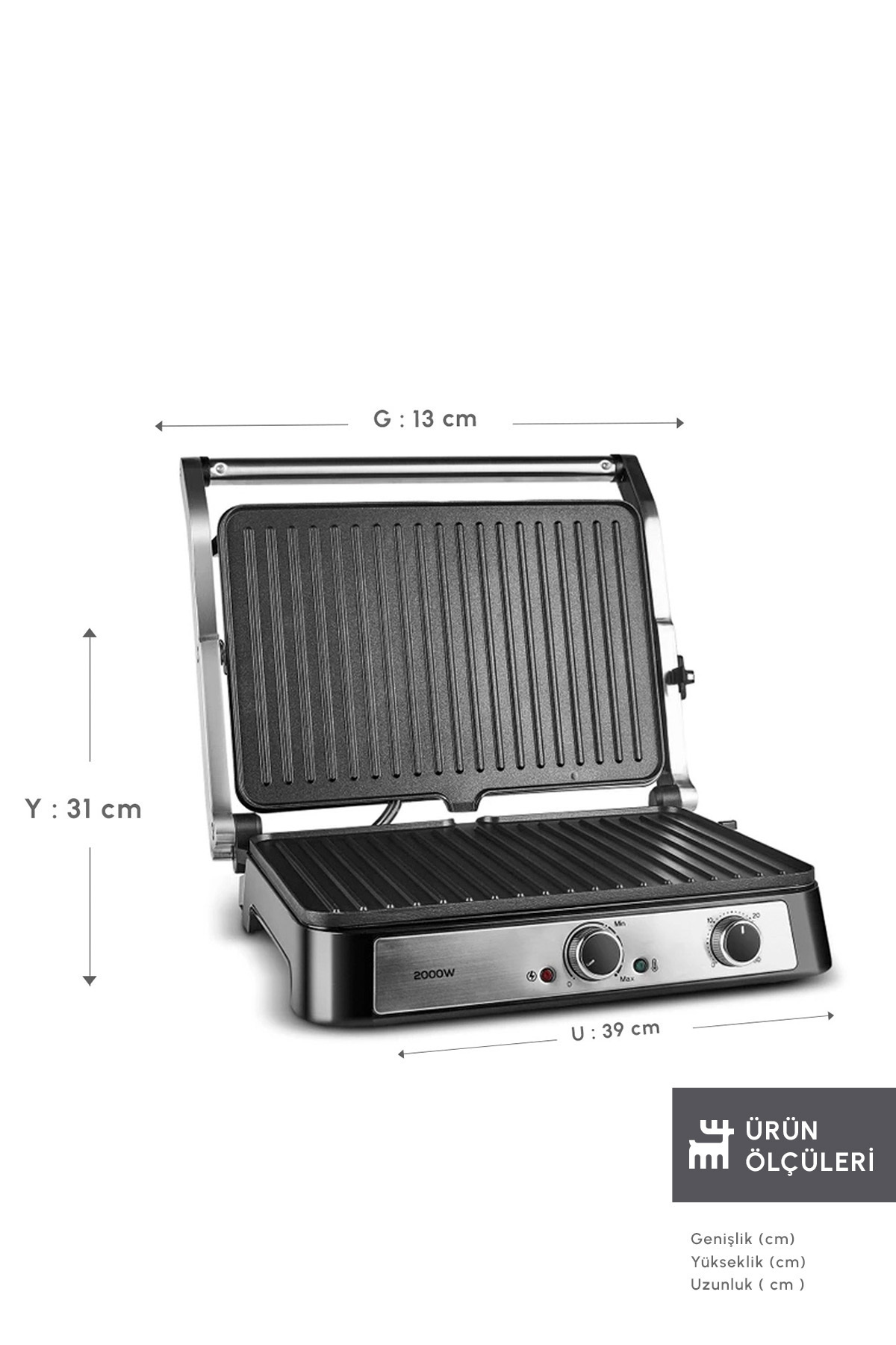 -2000 watt gücü ve ızgara özelliği ile lezzetli tost, et, tavuk veya sebzelerinizi hızlıca hazırlayabilirsiniz.