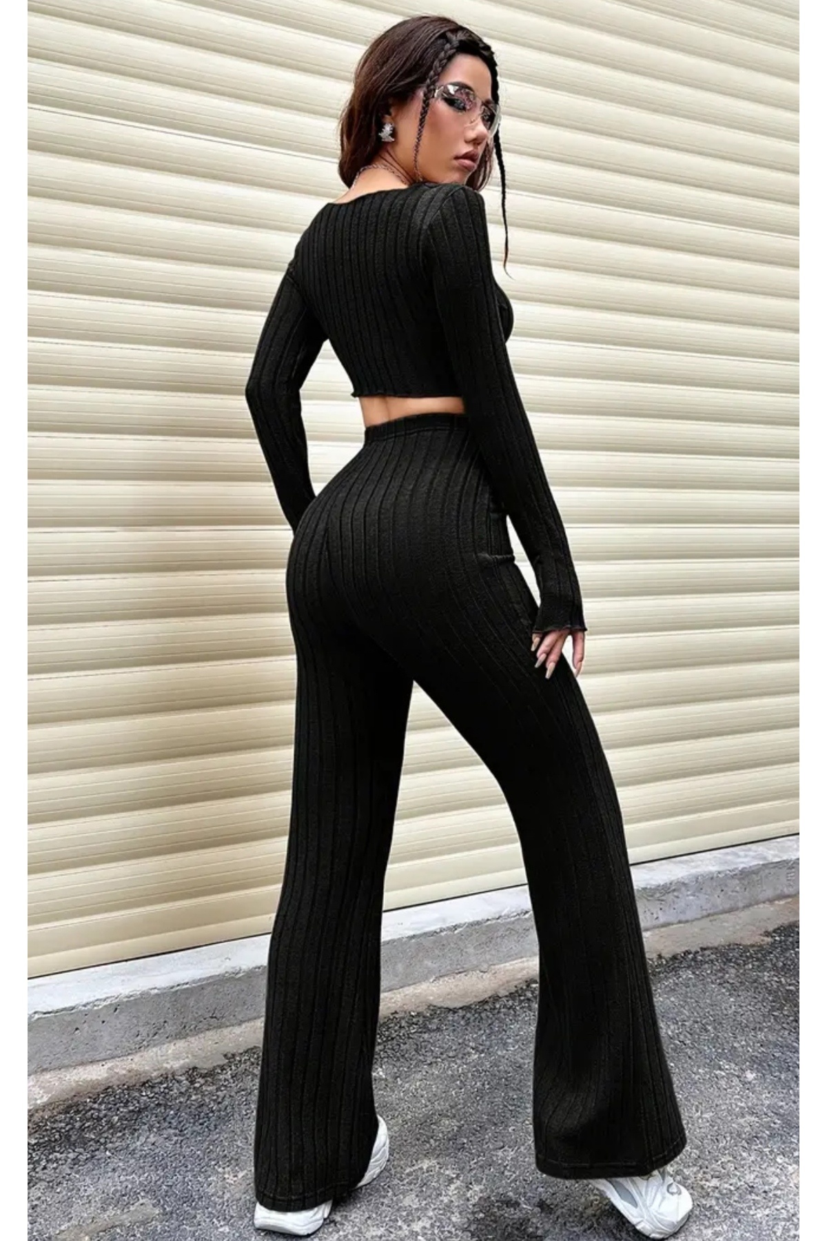- Modern sokak stilini yansıtan siyah uzun kollu fitilli kaşkorse alt üst takım, genç ve dinamik tarzınızı ön plana çıkarır.