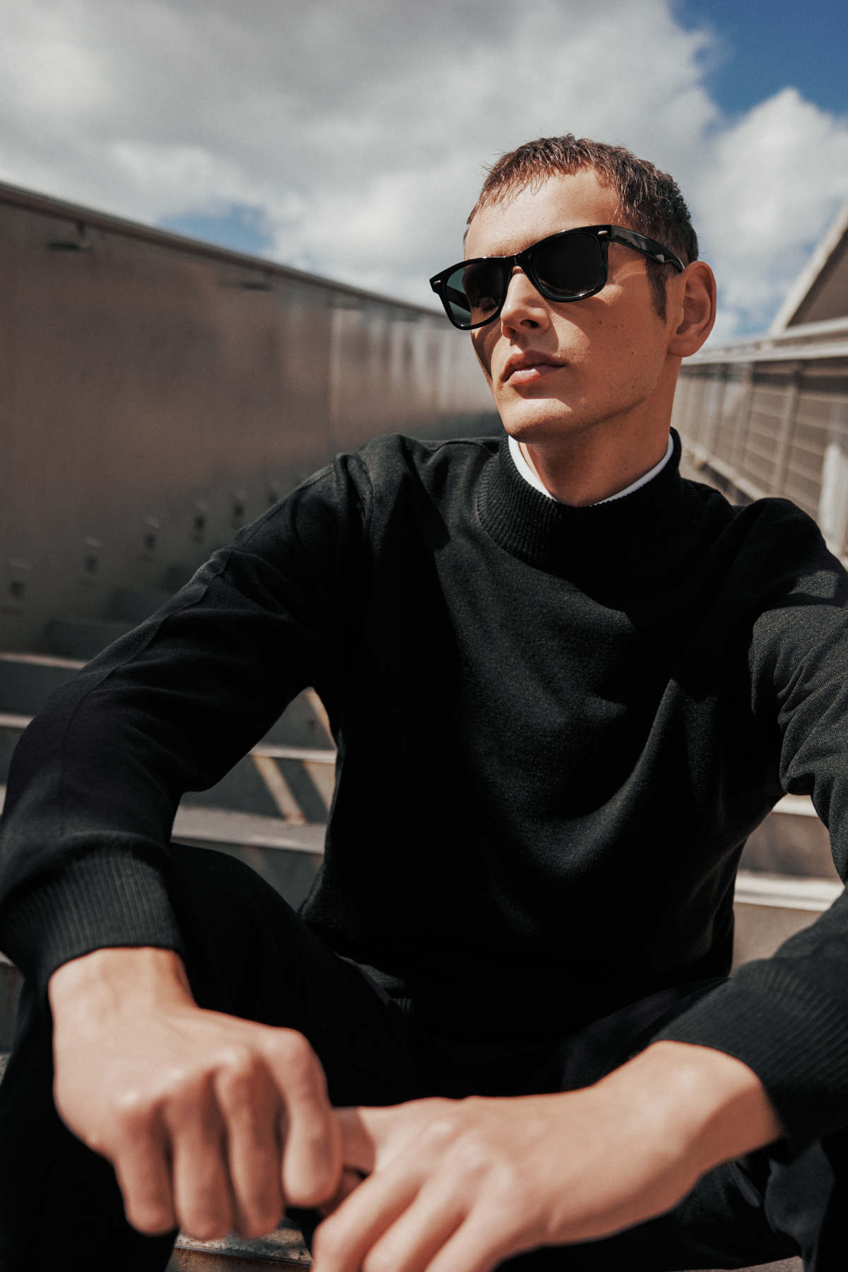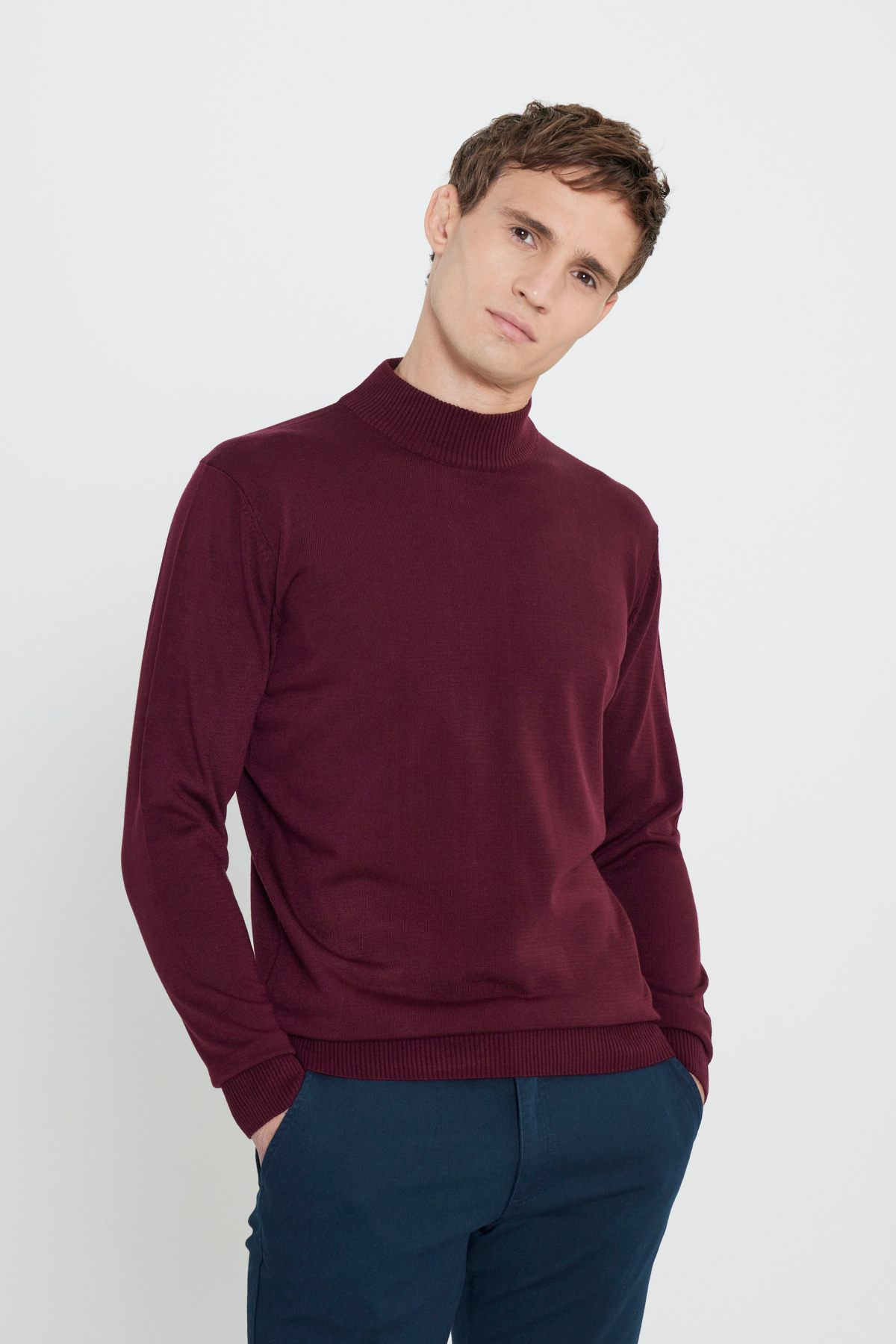 Balıkçı yaka detayı ile klasik kazak anlayışını yeniden yorumlar ve sofistike bir hava katar