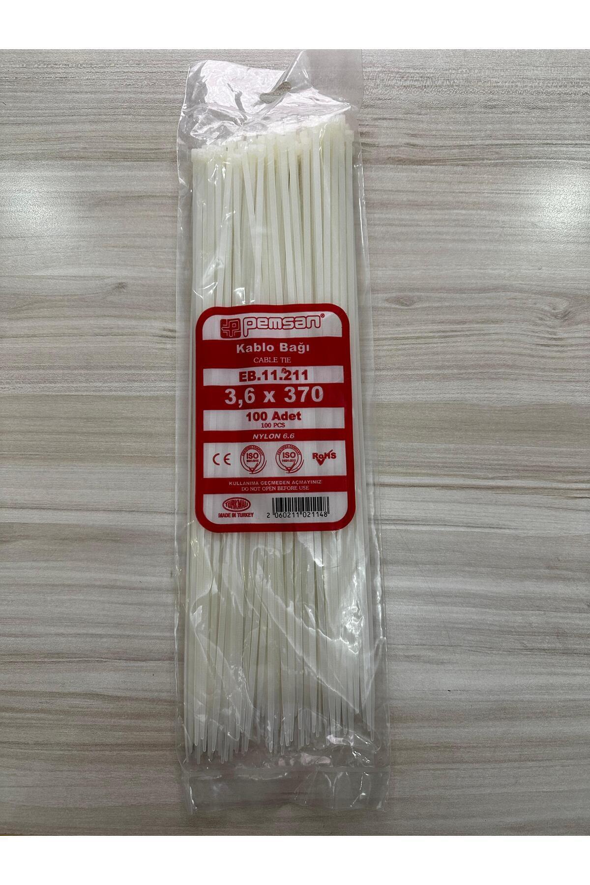 3.6x370 Plastik Cırt Kelepçe Kablo Bağı Beyaz 100'lu Paket (1.SINIF KALİTE)
