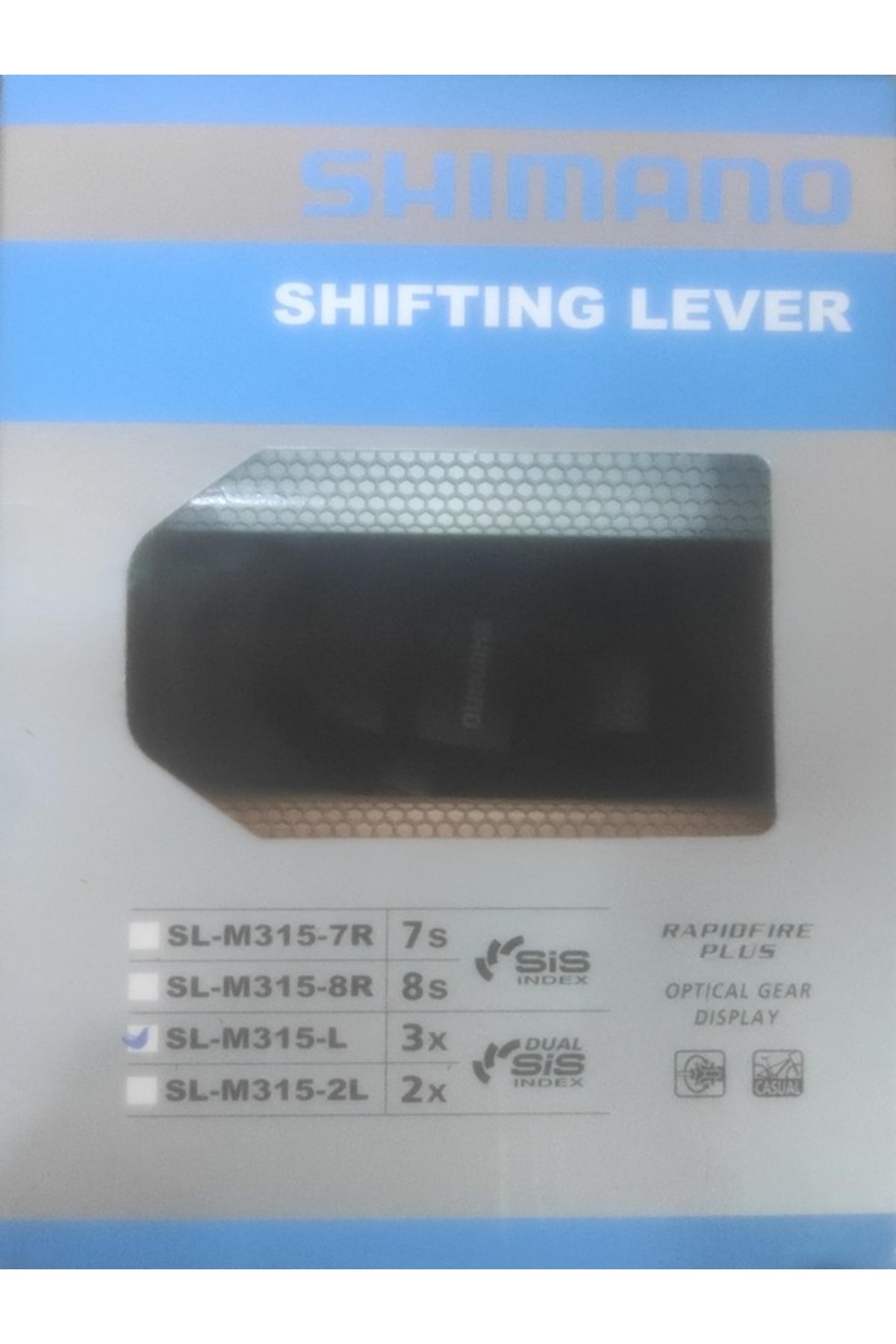 Vites Kolu Altus 3 Vites Sol Göstergeli SL-M315-L Özellikler Hafif vites değişimi, daha geniş uyumluluk ve içeriden kablo yönlendirmesi için uygunluk İnce ana kol gövdesi RAPIDFIRE PLUS Aerodinamik kokpit deneyimi Vites göstergesi gidonun altına yerleştirilmiştir Numaralı vites göstergesi bir bakışta vites dişlisi konumunu gösterir OPTICAL GEAR DISPLAY