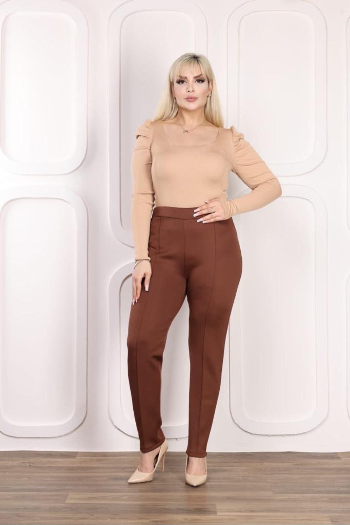 Yüksek bel tasarımı sayesinde vücut hatlarını zarifçe sararak feminen bir siluet oluşturur