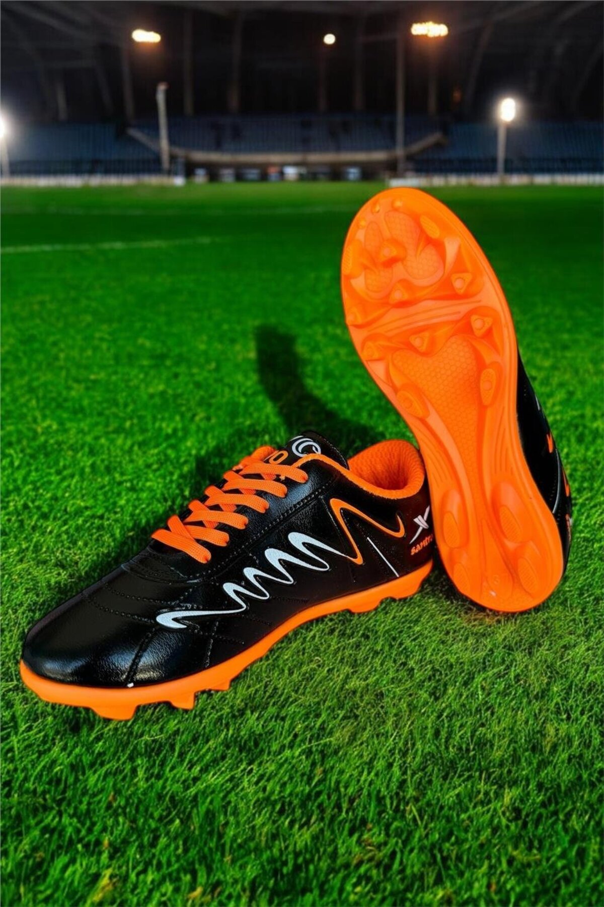 Erkek Krampon Dişli Futbol Ayakkabısı SİYAH - TURUNCU