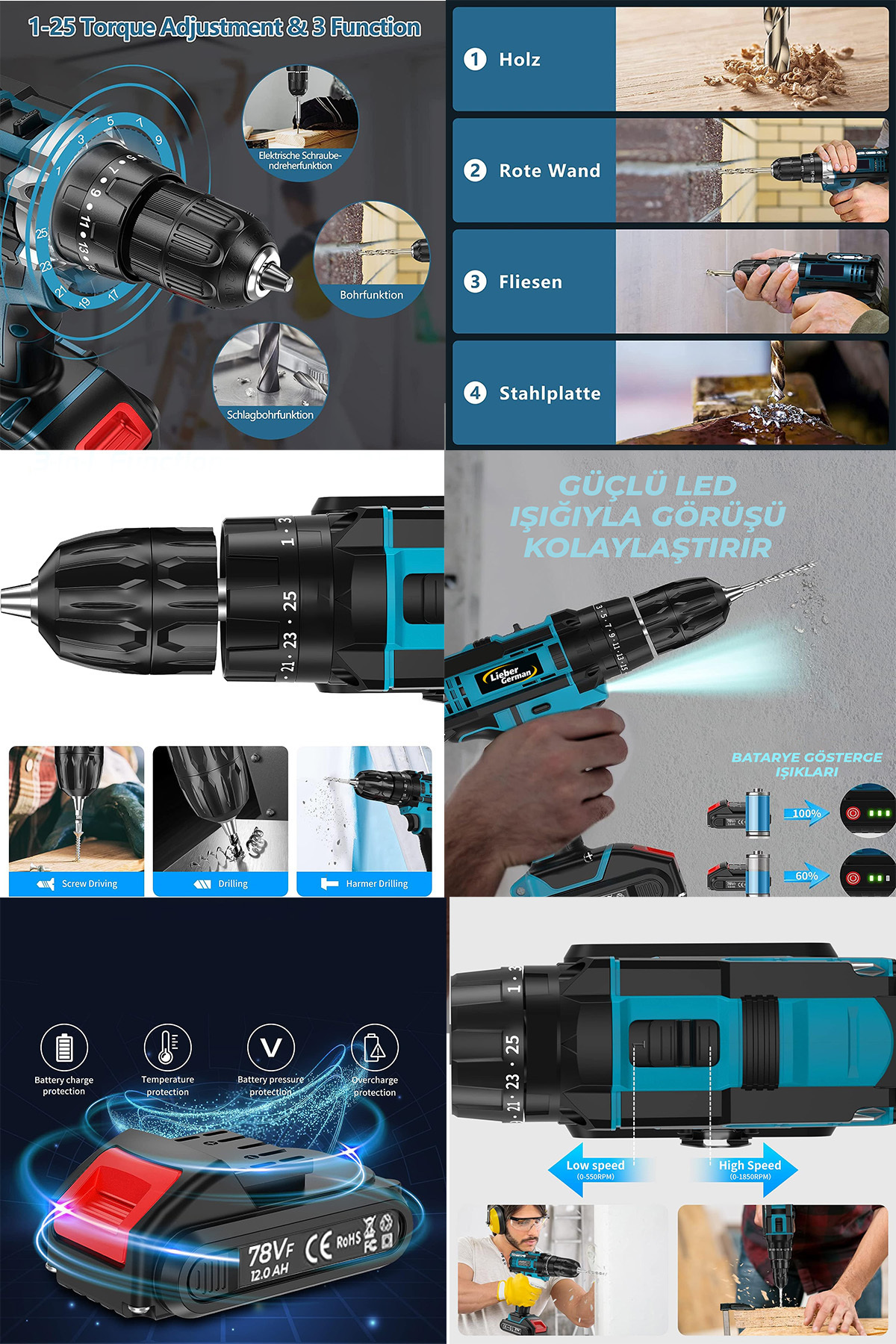 Yüksek tork, yüksek oranı ve yüksek dönüş hızı ile metalde ve ahşapta hızlı vidalama ve delme.