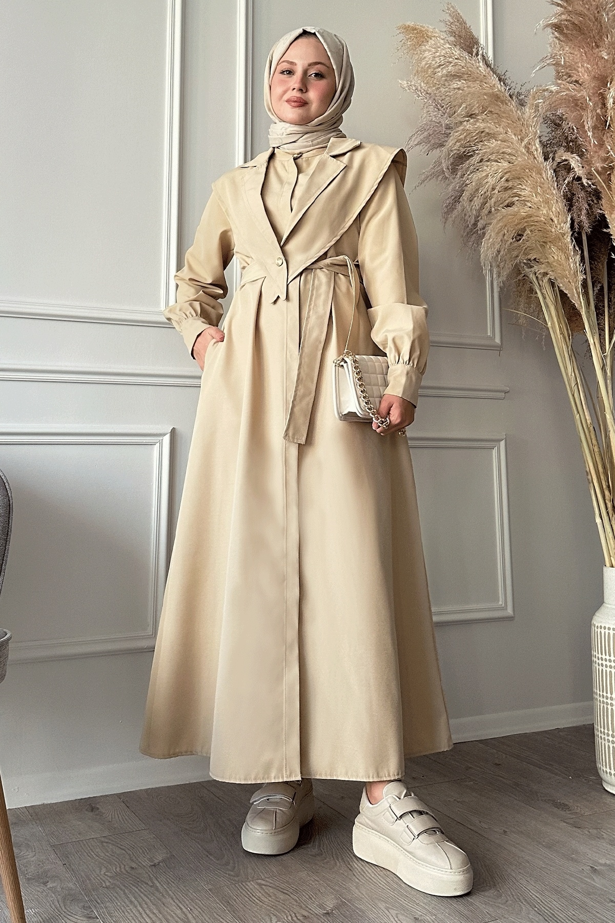Bolerolu Kemerli Haki Trençkot