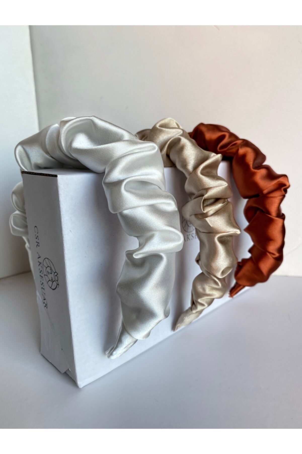 kakuleli kahve / sütlü kahve/ siyah renkleri olarak toplam 3 adet taç gönderilecektir. Taç ölçüleri standarttır taçların tüm imalatı ve tüm işlem süreci tarafımıza, Csr Aksesuar' a aittir. Taçlarda kullanılan saten ipek karışım saten olması ile saçınızda kırılma, elektirklenme gibi etkiler yaratmaz ve olumsuz etkilemez. siparişlerinizde renk değişimi için sipariş verdikten sonra sipariş numaranızı ileterek ''soru sor'' bölümünden arzu ettiğiniz renkleri iletebilirsiniz.