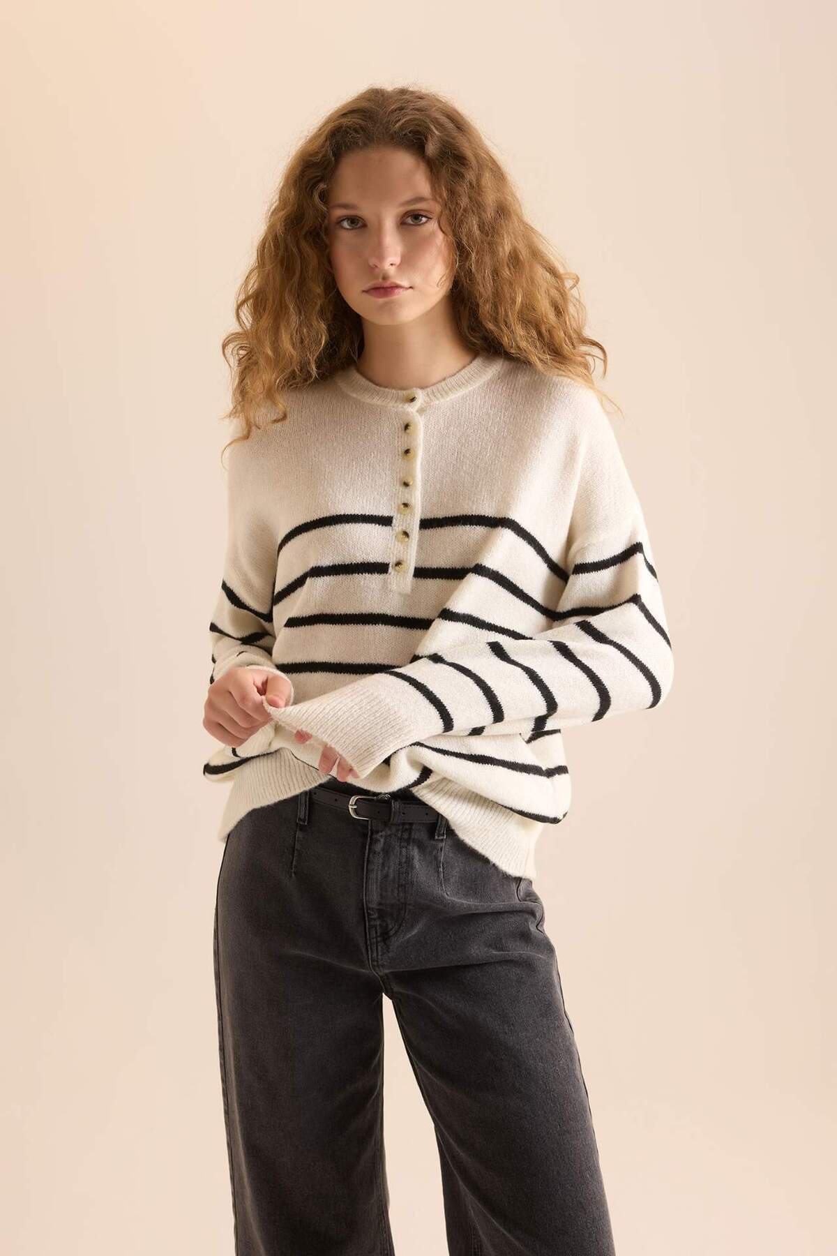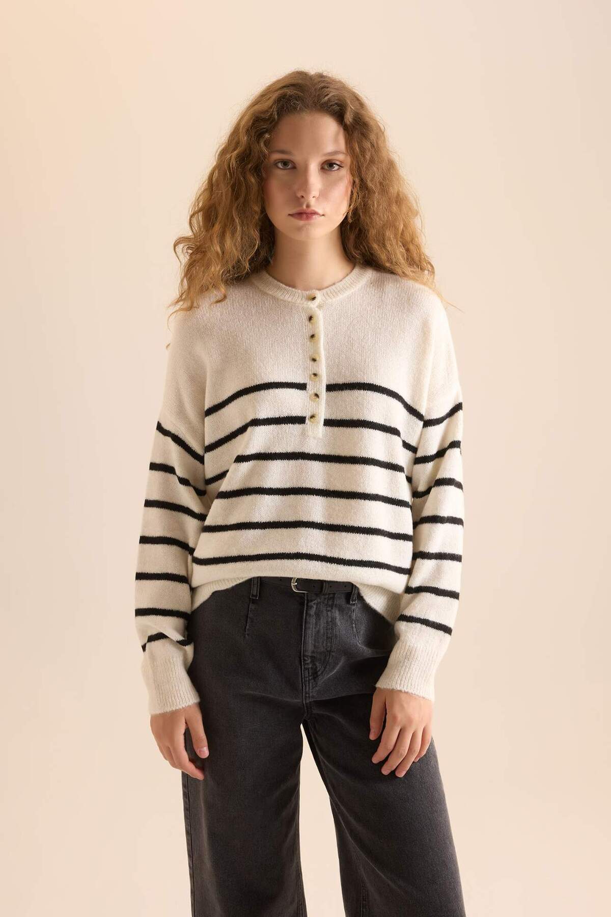 Şık ve rahat, Relax Fit Düğmeli Yaka Kazak, gardırobunuzun vazgeçilmezi olmaya aday.
