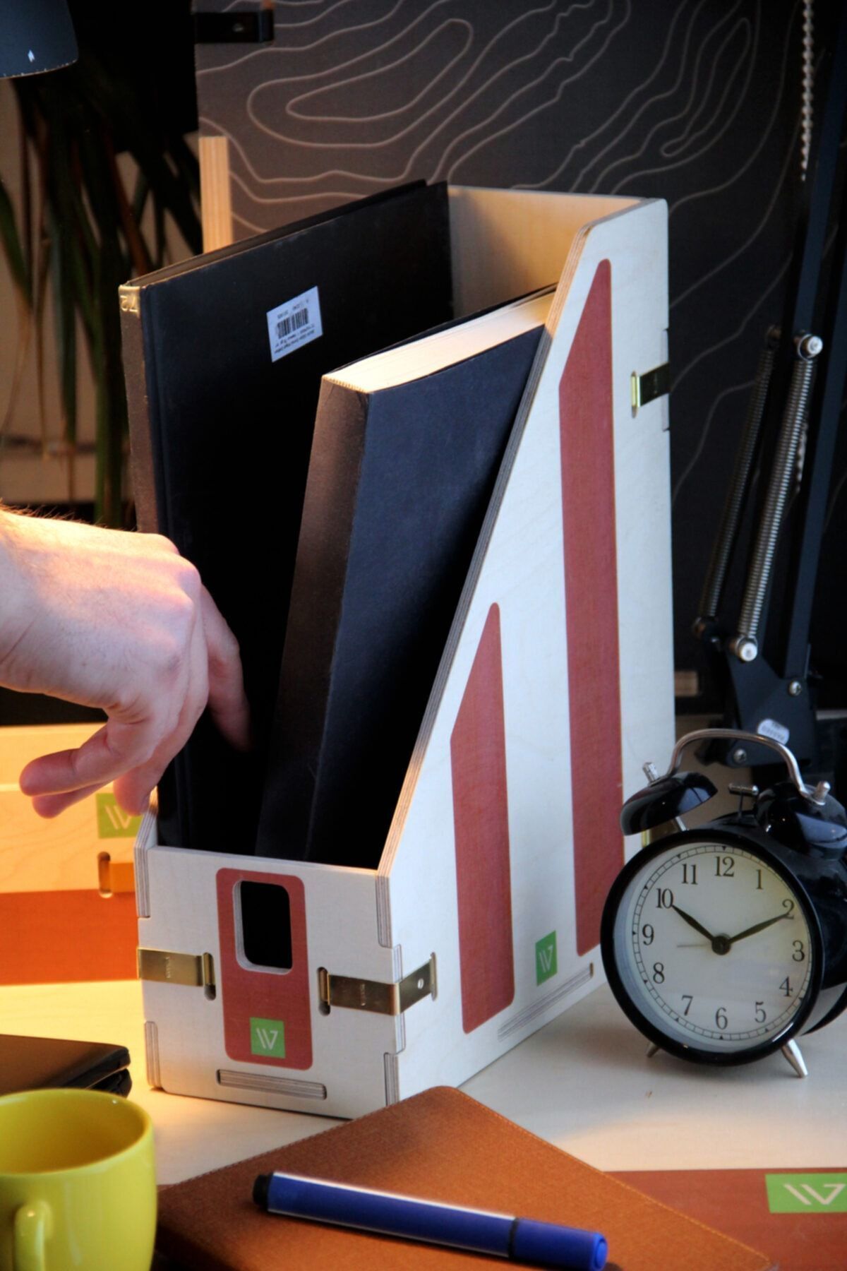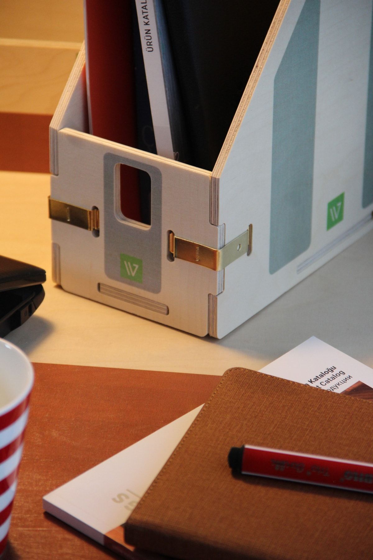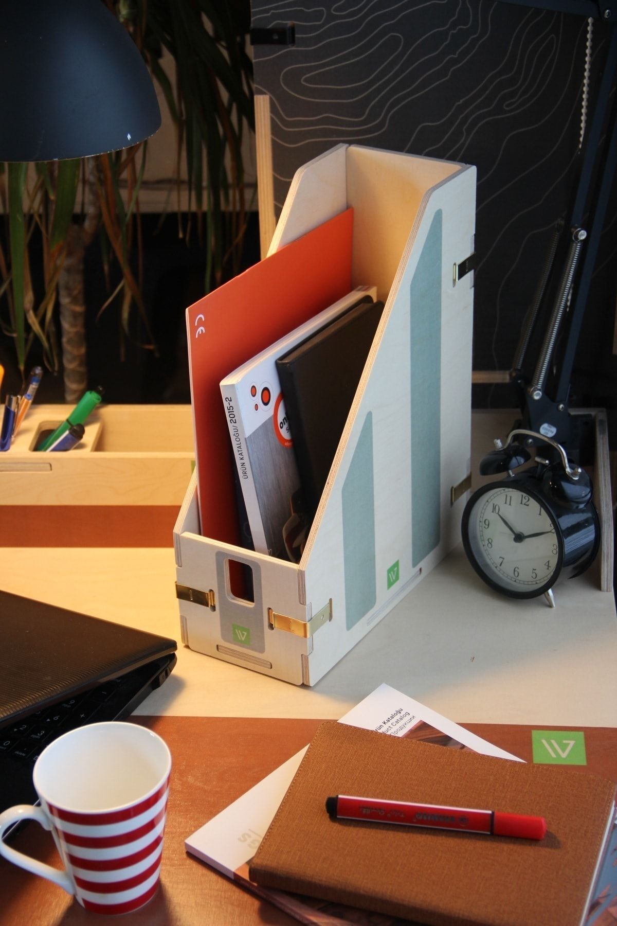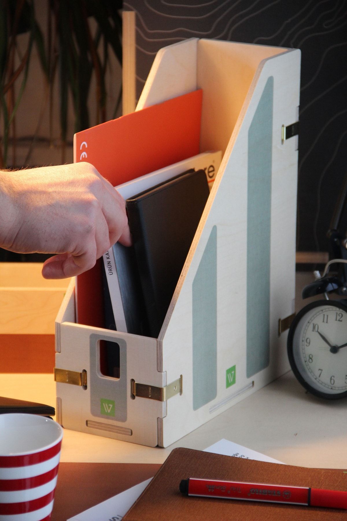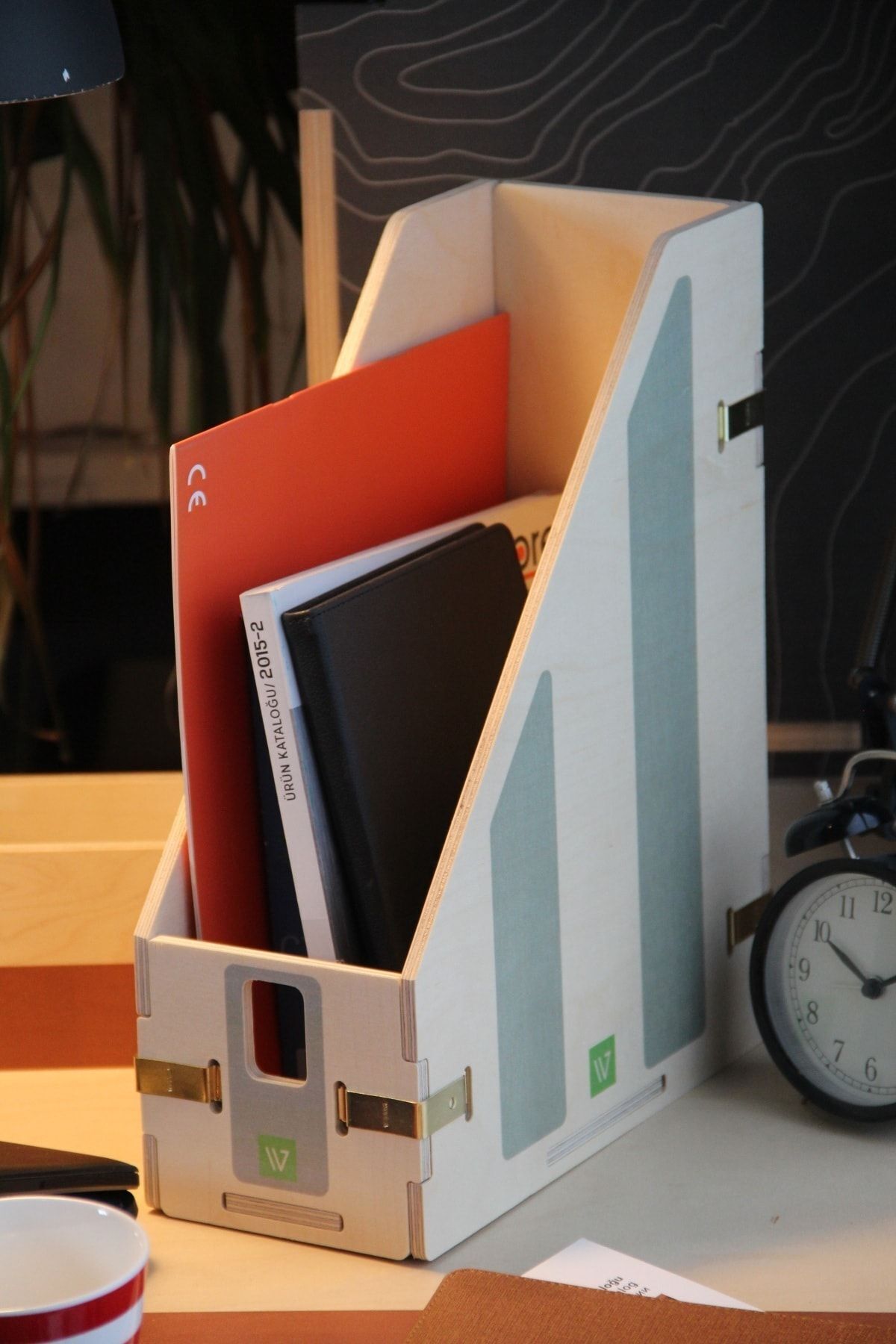 Masaüstünüzde düzenli bir görünüm için ideal, 12cm x 33cm x 26cm boyutlarında yeşil renkli ahşap dosyalık