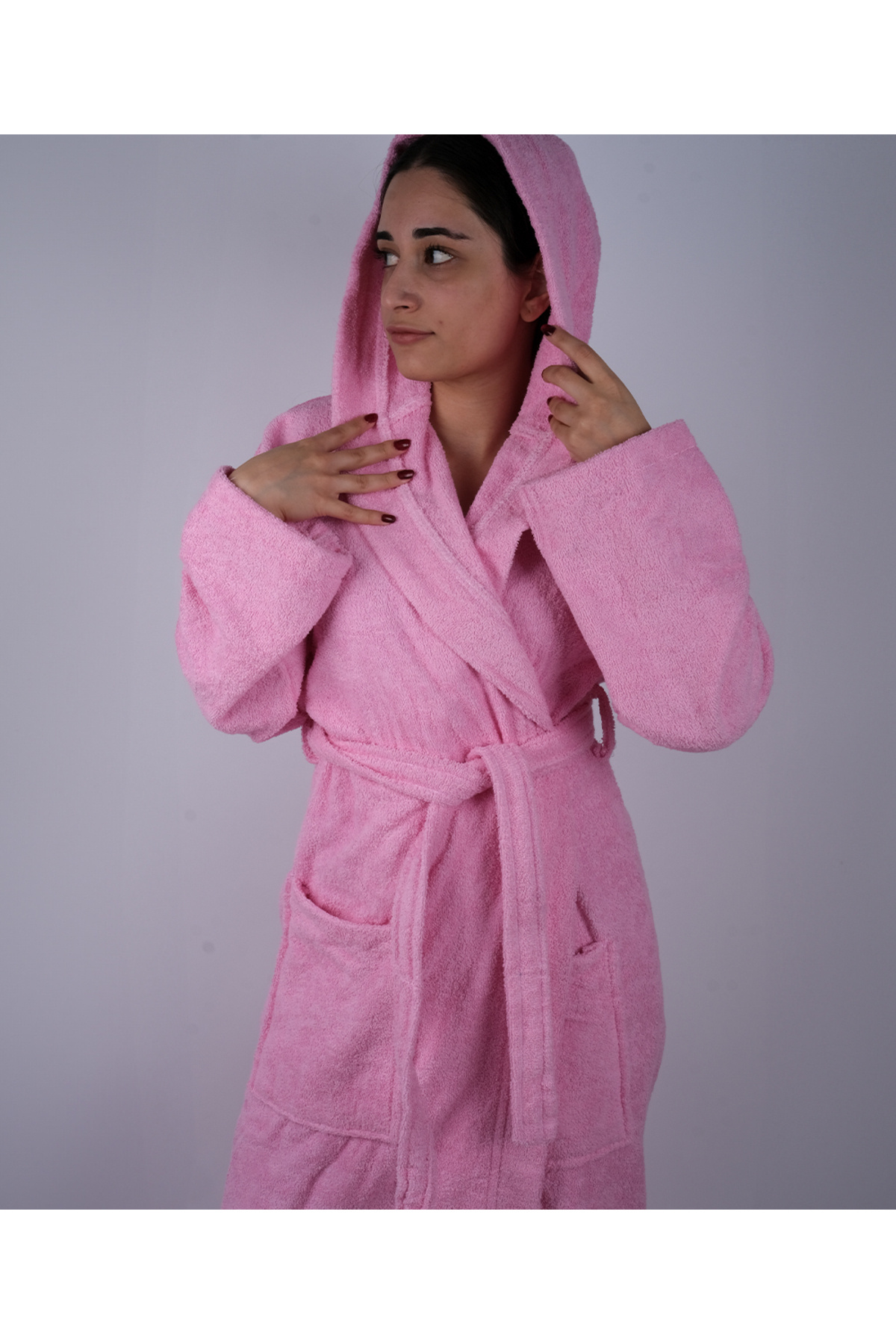 Kırmızı Renkli %100 Pamuk Bukle Kapüşonlu Model Bornoz S-M-L-XL-2XL-3XL-4XL Büyük Beden