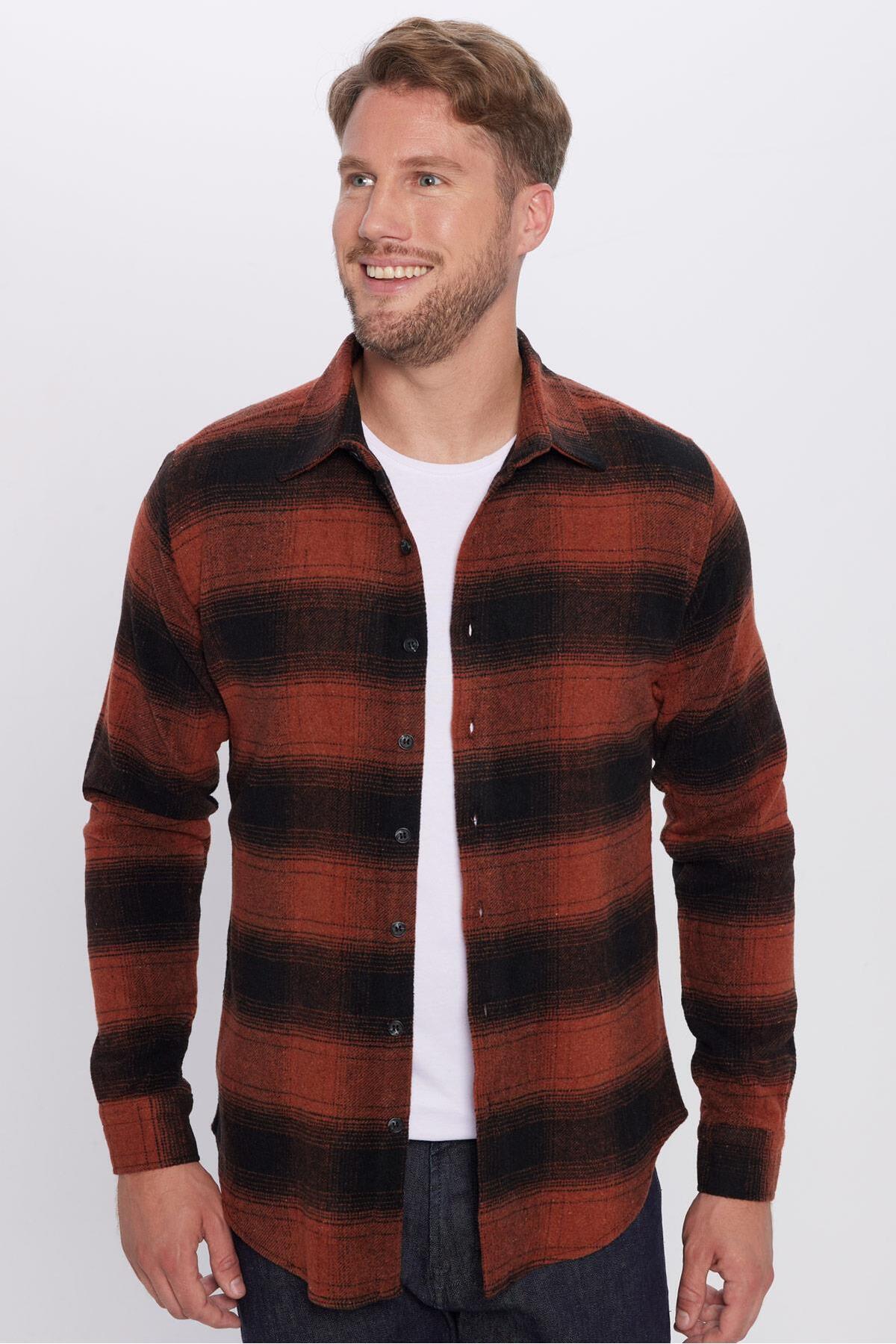 Erkek Slim Fit Dar Kesim Oduncu Kareli Kışlık Gömlek