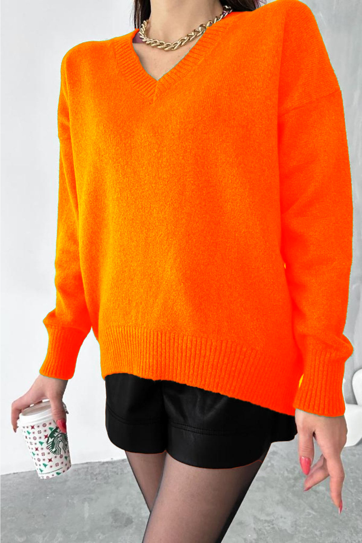 Kadın Bordo V Yaka Standart Beden Oversize Basic Triko Kazak