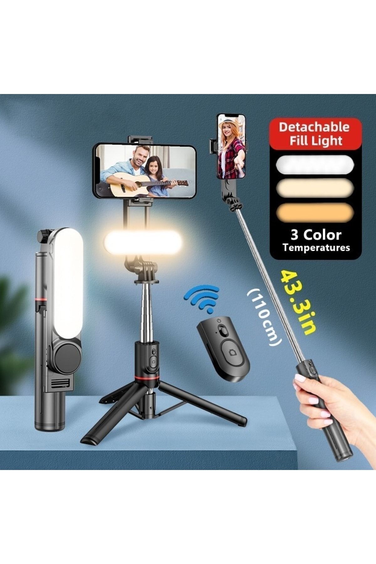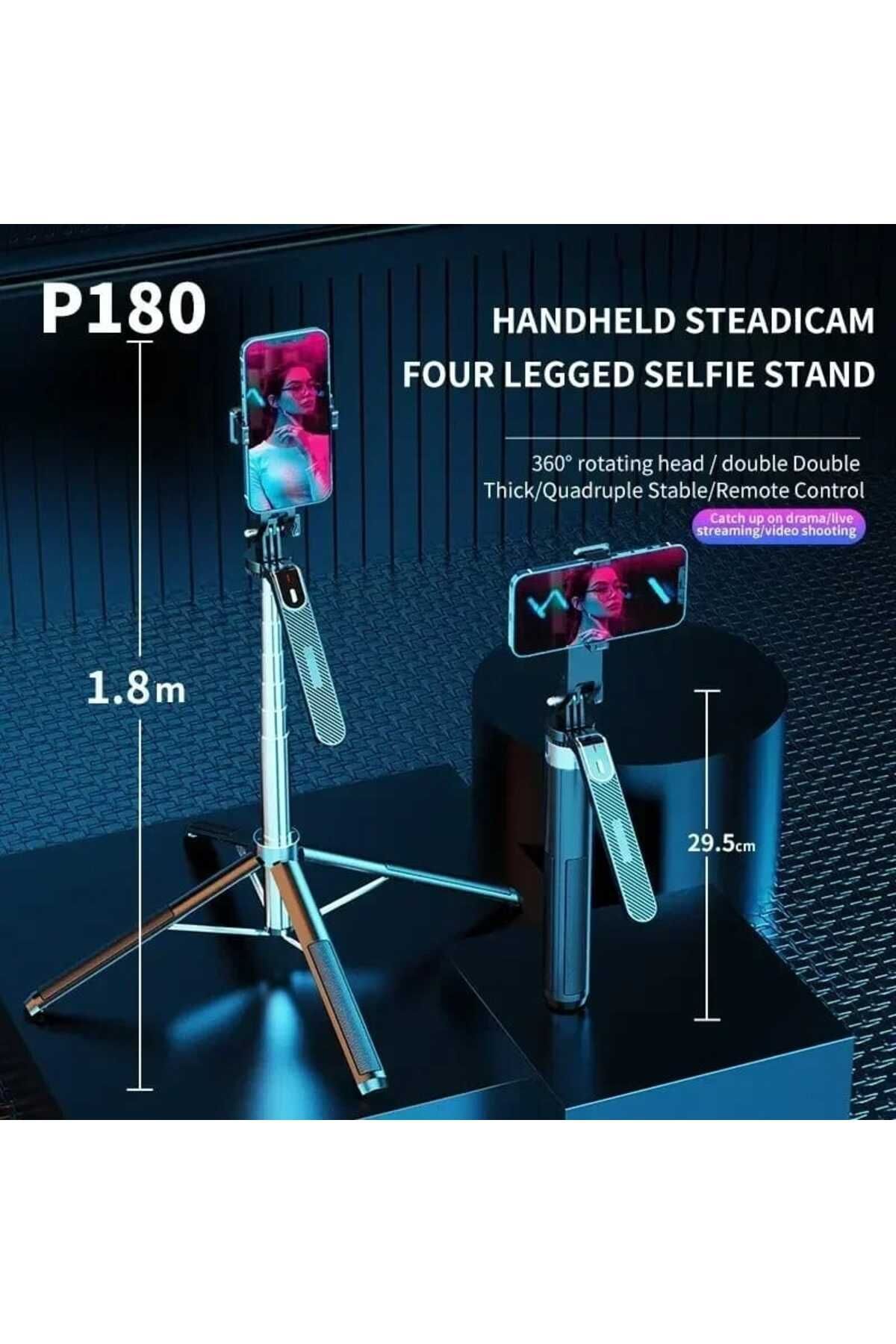 183 cm Bluetooth Kumandalı Katlanabilir Selfie Çubuğu Alüminyum Taşınabilir Sağlam Tripod