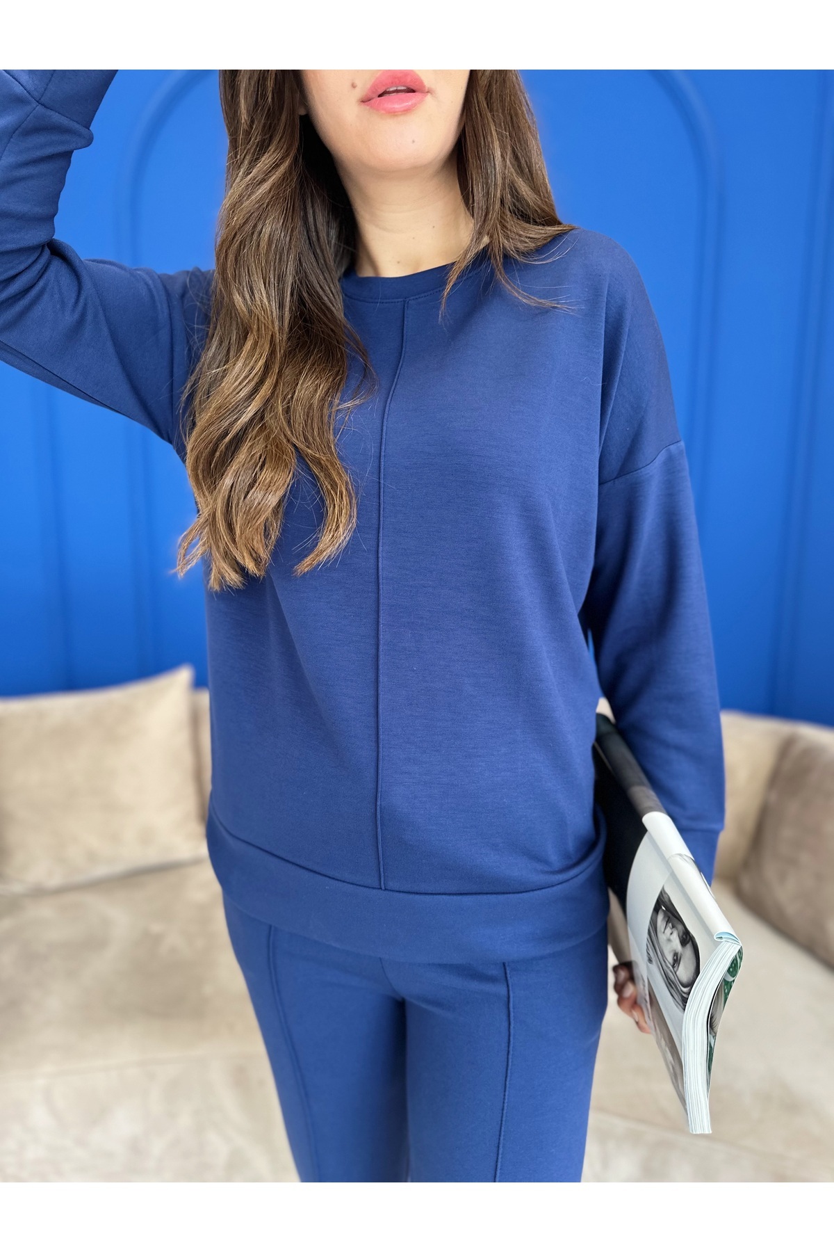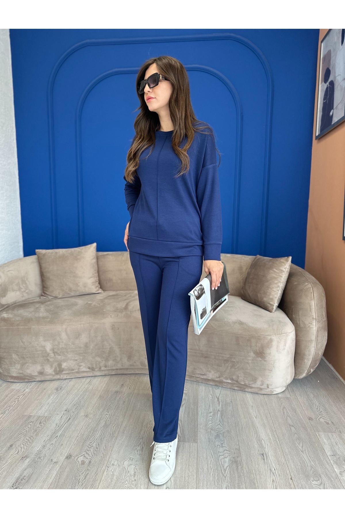 - Uzun kollu bluz ve pantolon kombinasyonu ile tamamlanan bu takım, mevsim geçişlerinde idealdir.