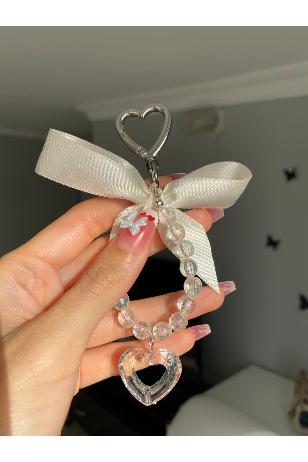 Gençlerin enerjisini ve stilini yansıtan şeffaf boncuklu kalpli coquette çanta charmı, genç kullanıcıların tarzını tamamlar