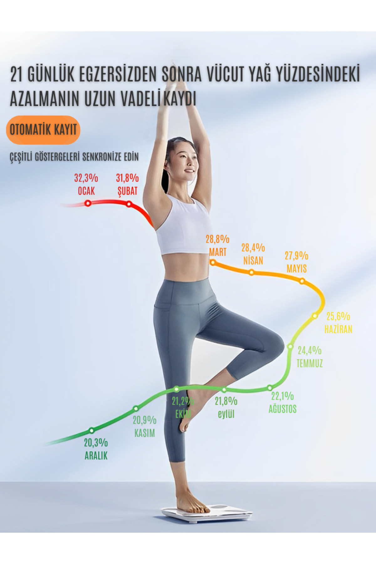 - Vücut kitle indeksi ölçümü ile genel sağlık durumunuzu analiz ederken, bazal metabolizma hızınızı ölçerek daha iyi bir fitness planı oluşturmanıza yardımcı olur.